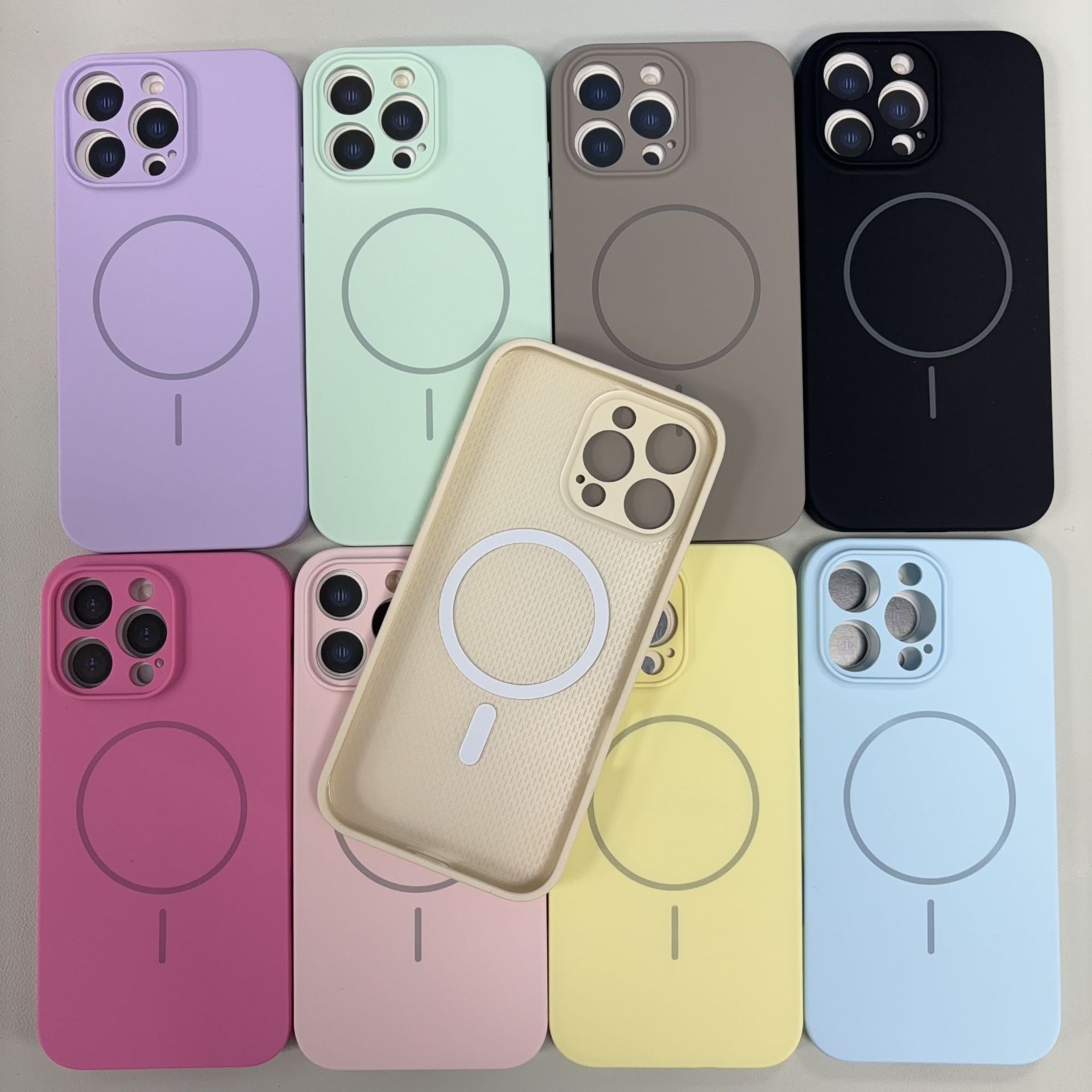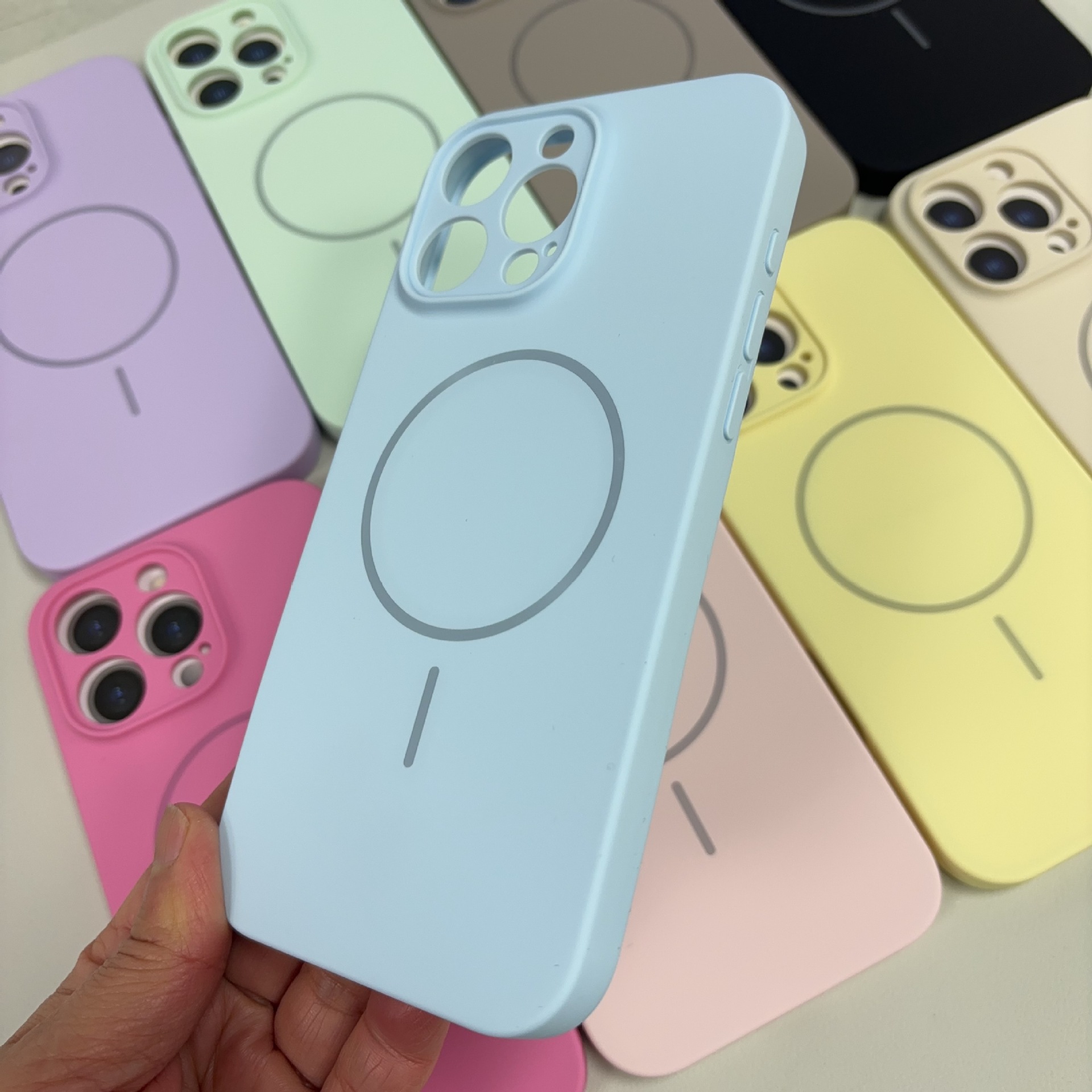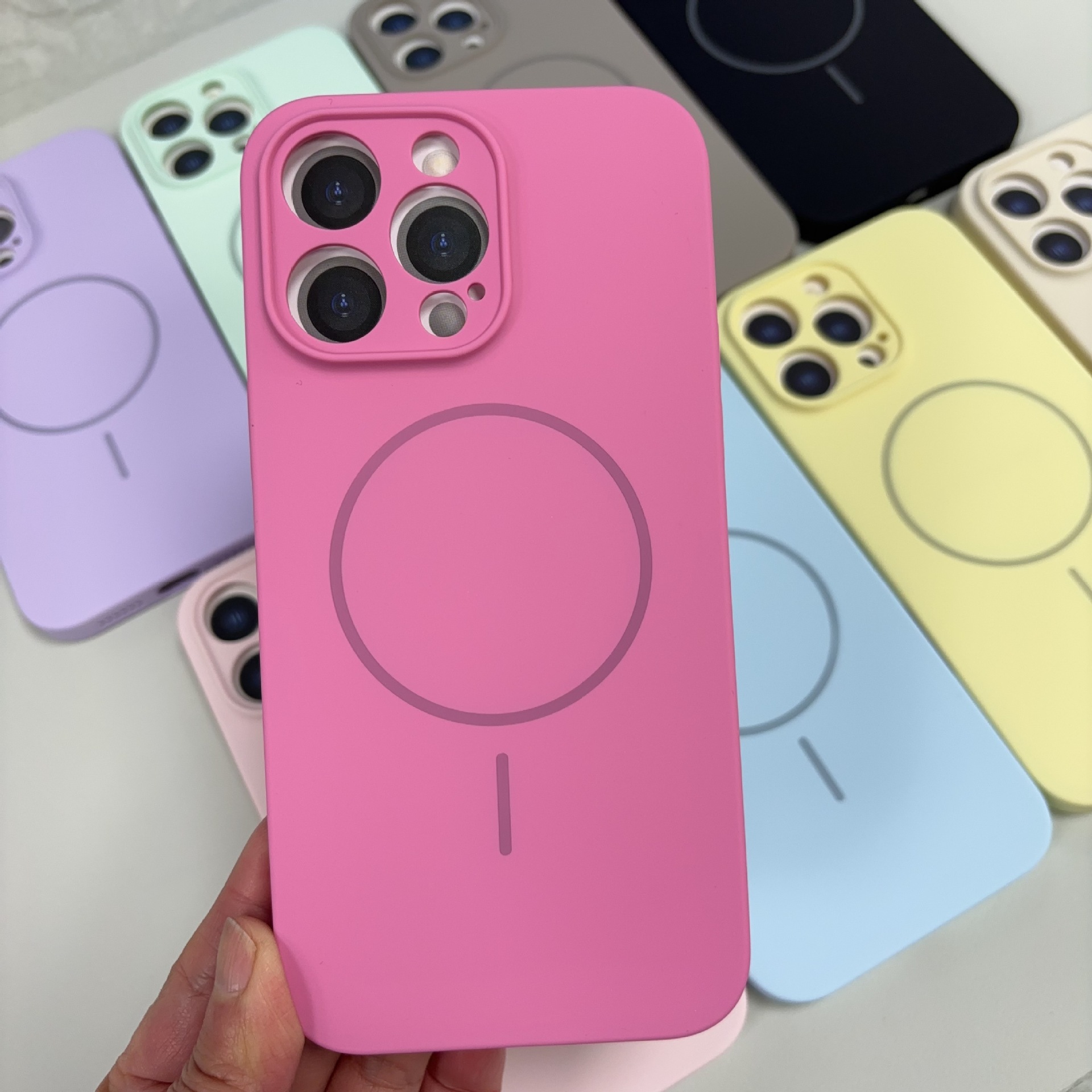 정밀한 구멍이 있는 자기 흡착 클라우드 감각 액체 실리콘 케이스, Ai 버튼이 있는 애플 17/16/15/14Pro 휴대폰 케이스에 적합스토어 가기