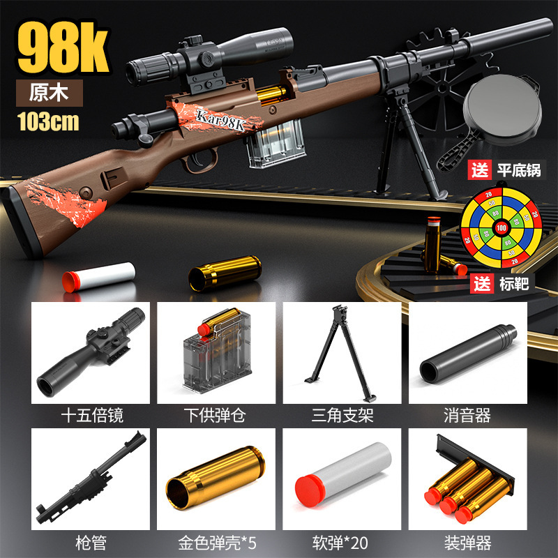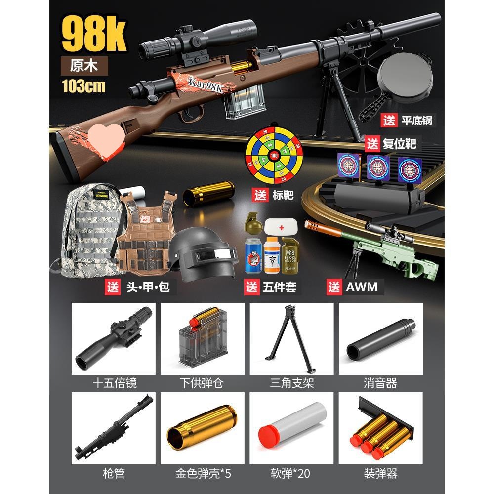 부드러운 총알 총을 던지는 98k 쉘 98g 저격수 큰 awm 저격수는 정말 어린이 장난감 소년 부드러운 달걀 당김 볼트를 털다스토어 가기