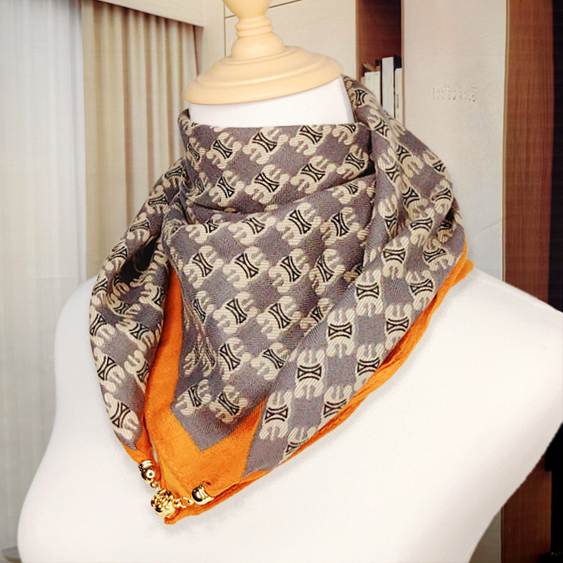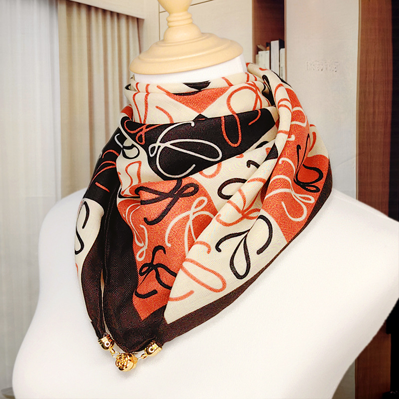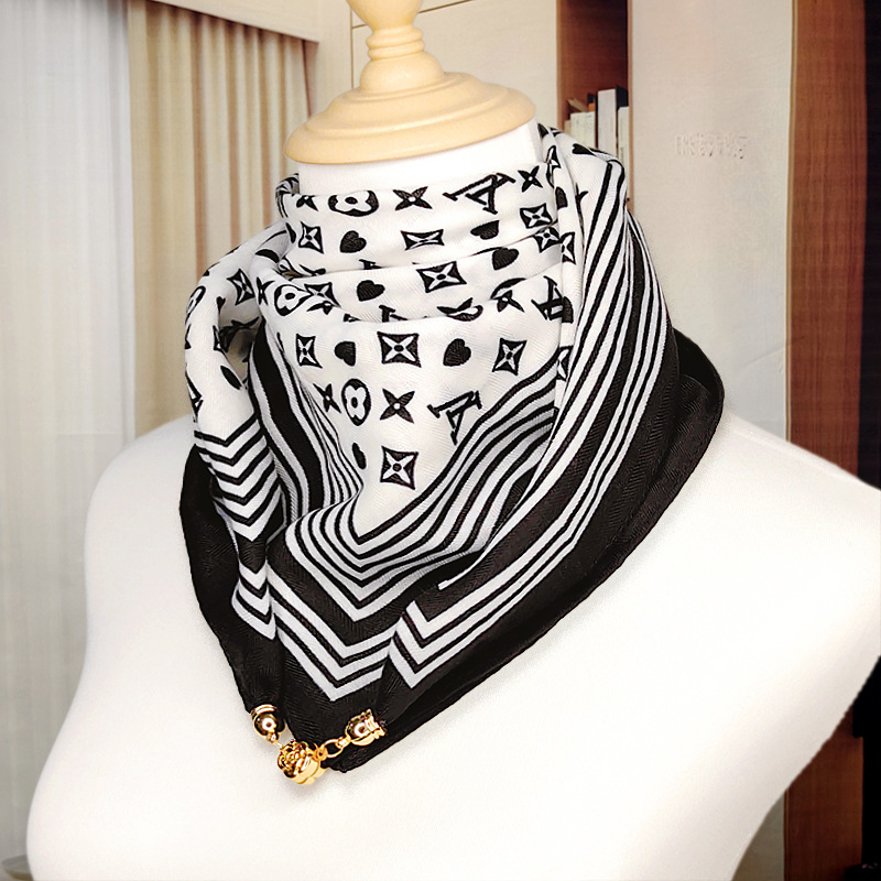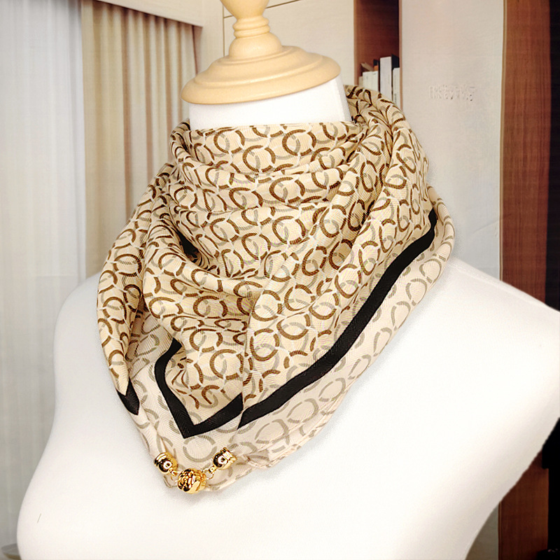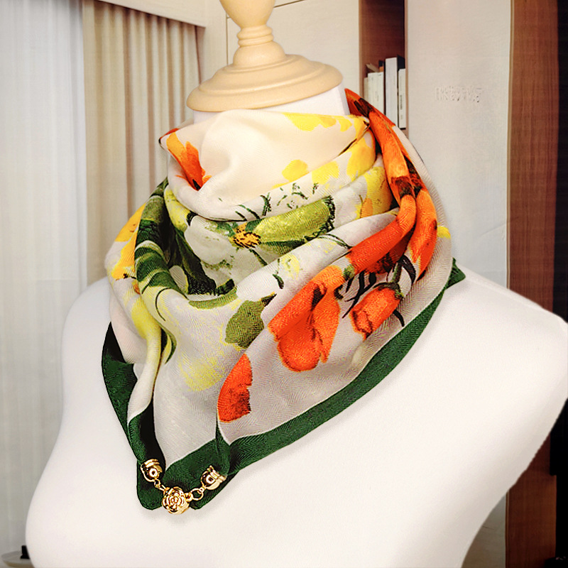 장미꽃 자석 버클 보온 삼각 스카프 목도리 여성용 목 보호 중국풍 프린트 자석 버클 숄