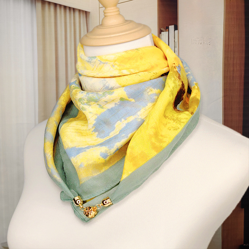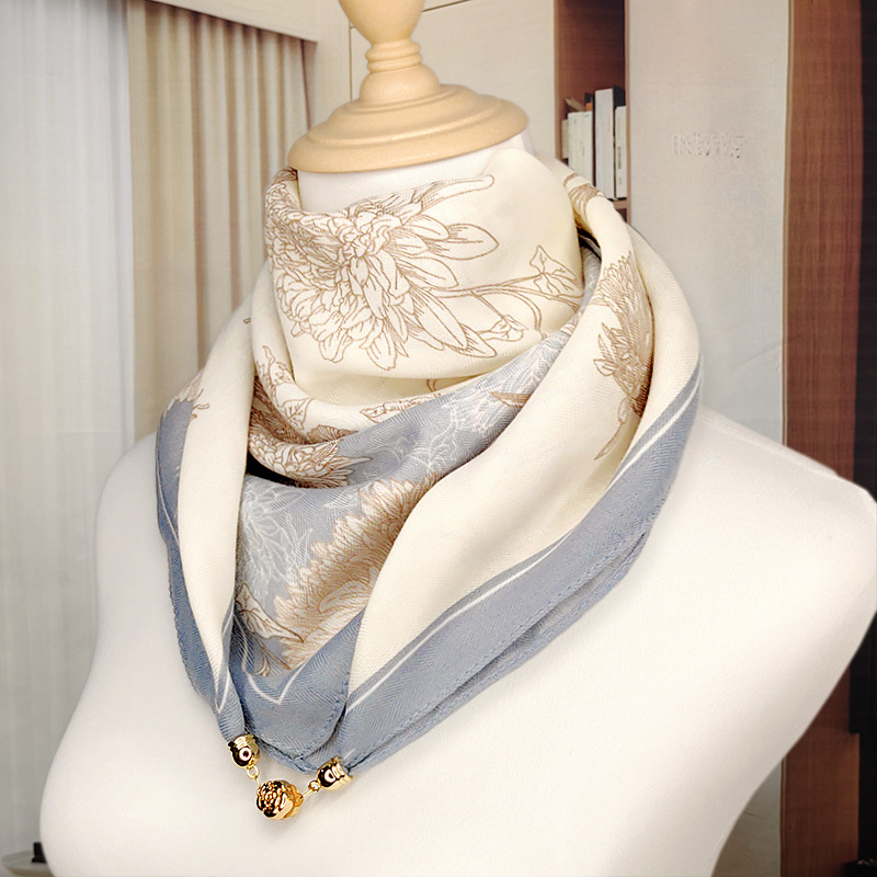 장미꽃 자석 버클 보온 삼각 스카프 목도리 여성용 목 보호 중국풍 프린트 자석 버클 숄스토어 가기