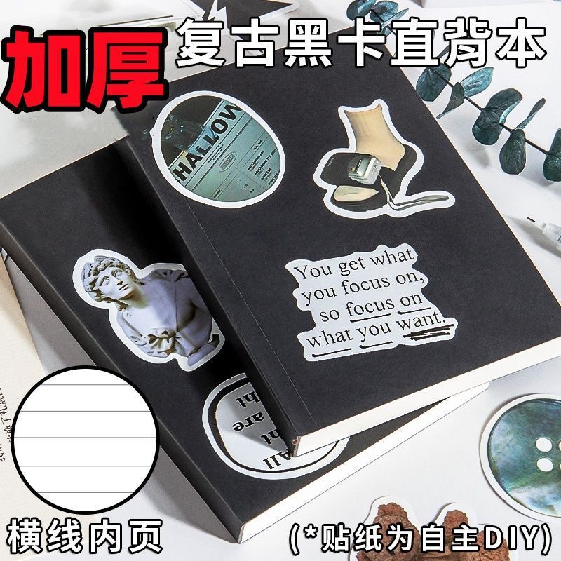 블랙 카드 노트북 간단한 대학생들은 a5 두꺼운 빈 내부 페이지 수평 라인 책 b5 스트레이트 백 노트북 저널을 사용합니다.스토어 가기