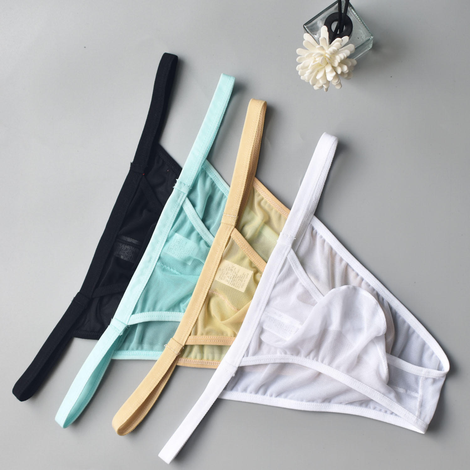 도매 유럽과 미국의 대외 무역 섹시한 낮은 허리 남성 브리프 통기성 섹시한 속옷 원근법 메쉬 작은 삼각형 B909