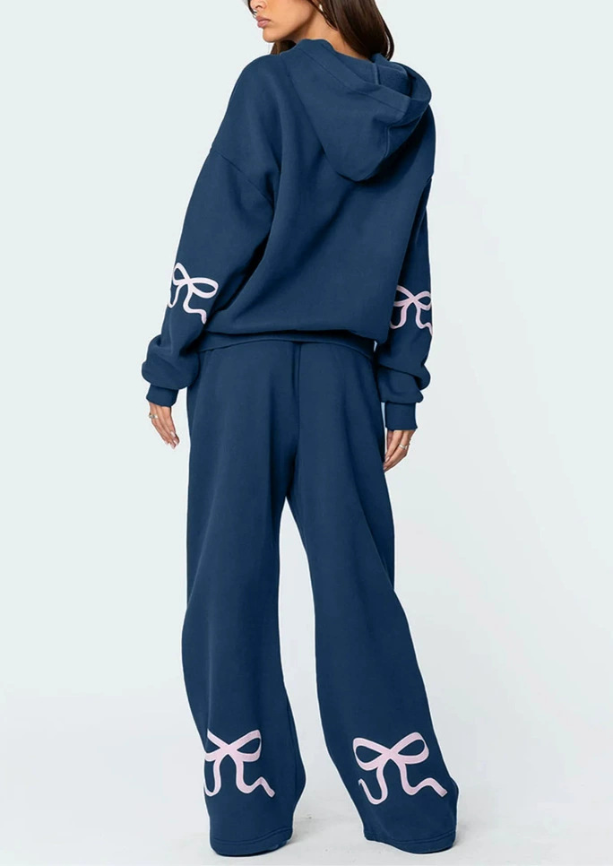 가을과 겨울 새로운 국경 유럽과 미국의 둥근 목 긴 소매 느슨한 땀 여성 패션 캐주얼 와이드 다리 바지 세트