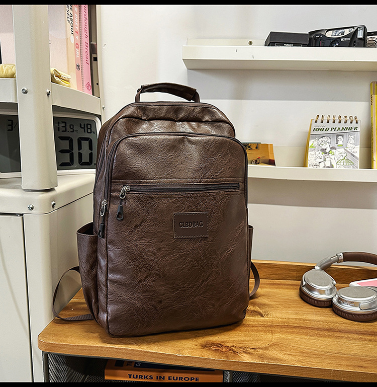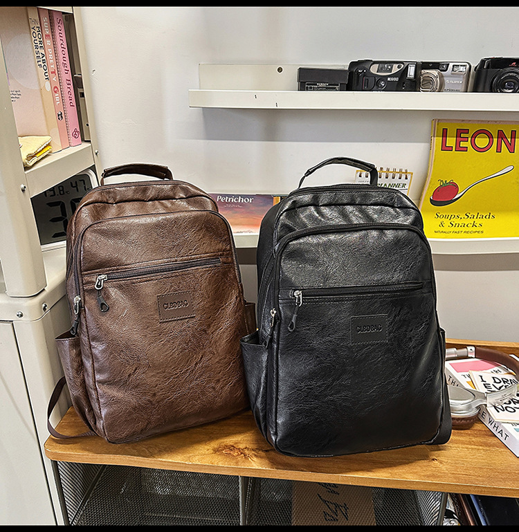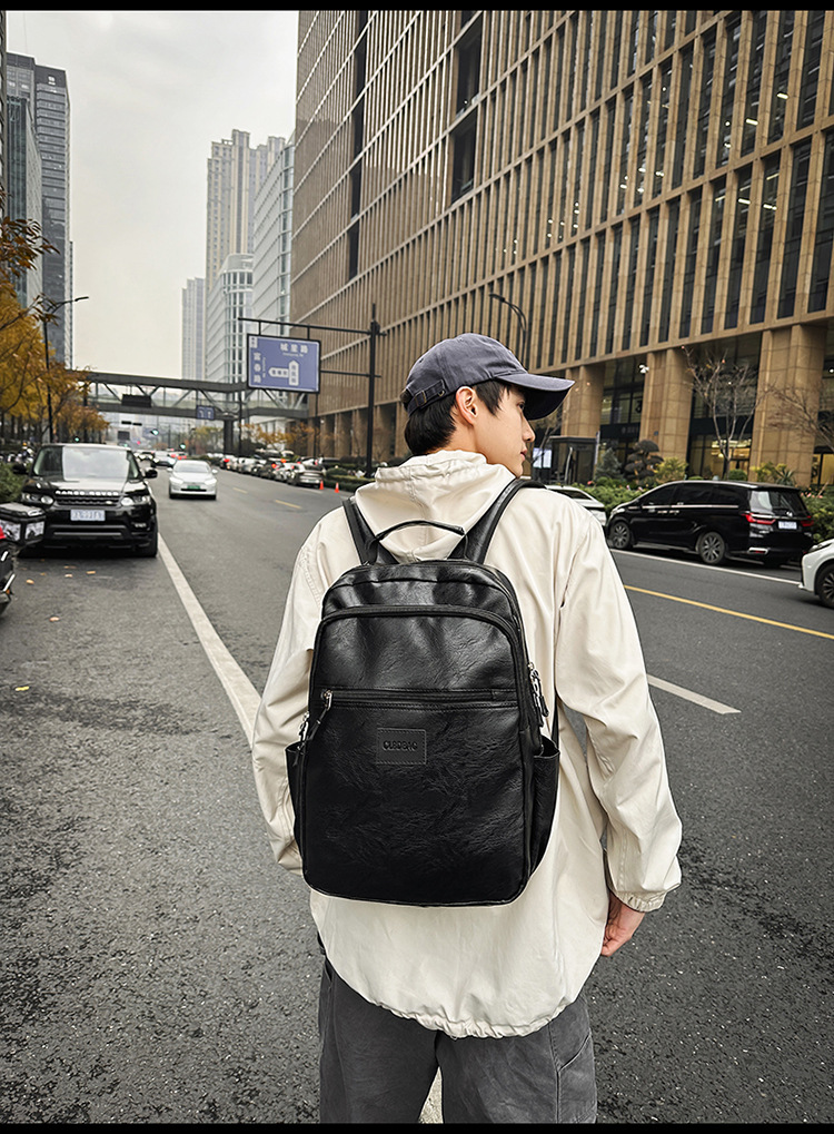 새로운 국경 유행 레저 여행 학생 Schoolbag PU 부드러운 가죽 남성 비즈니스 배낭 대용량 컴퓨터 배낭