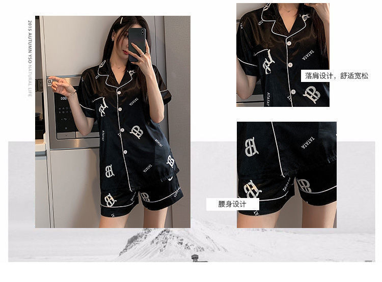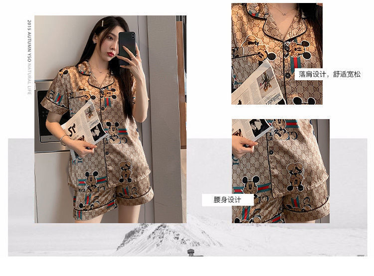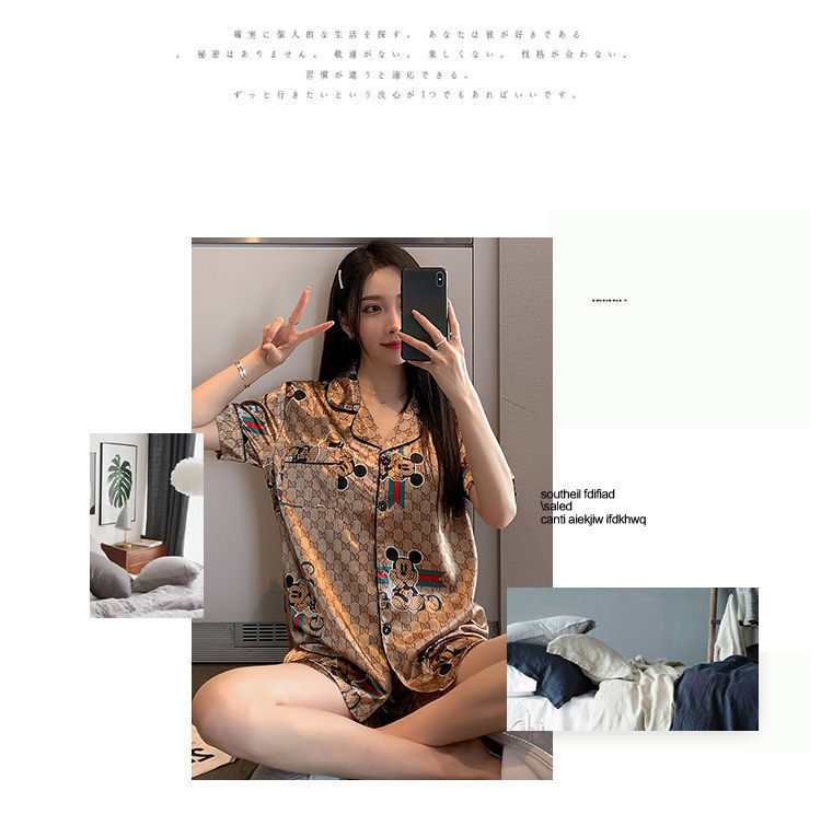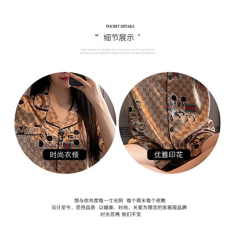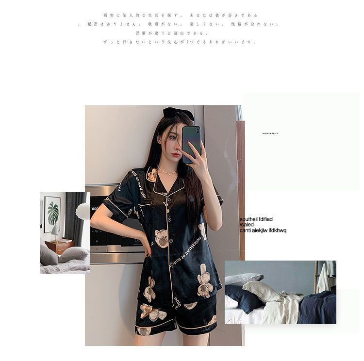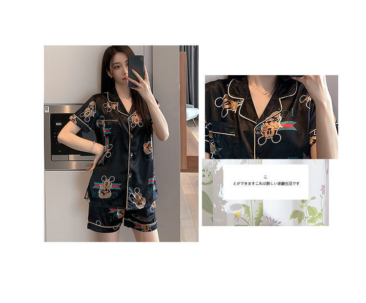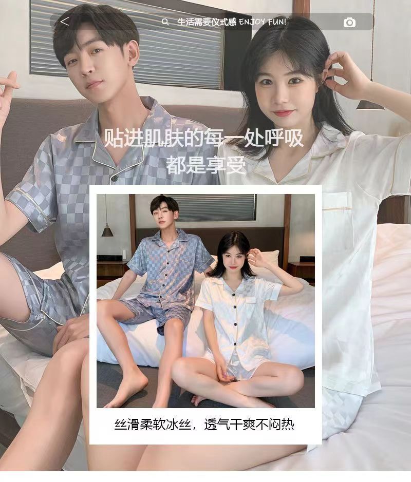 국경 간 여름 커플 여성 아이스 실크 파자마 남자 반팔 카디건 얇은 모조 실크 홈 의류 만화 세트스토어 가기