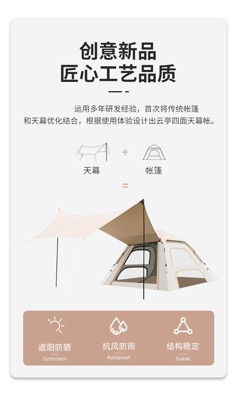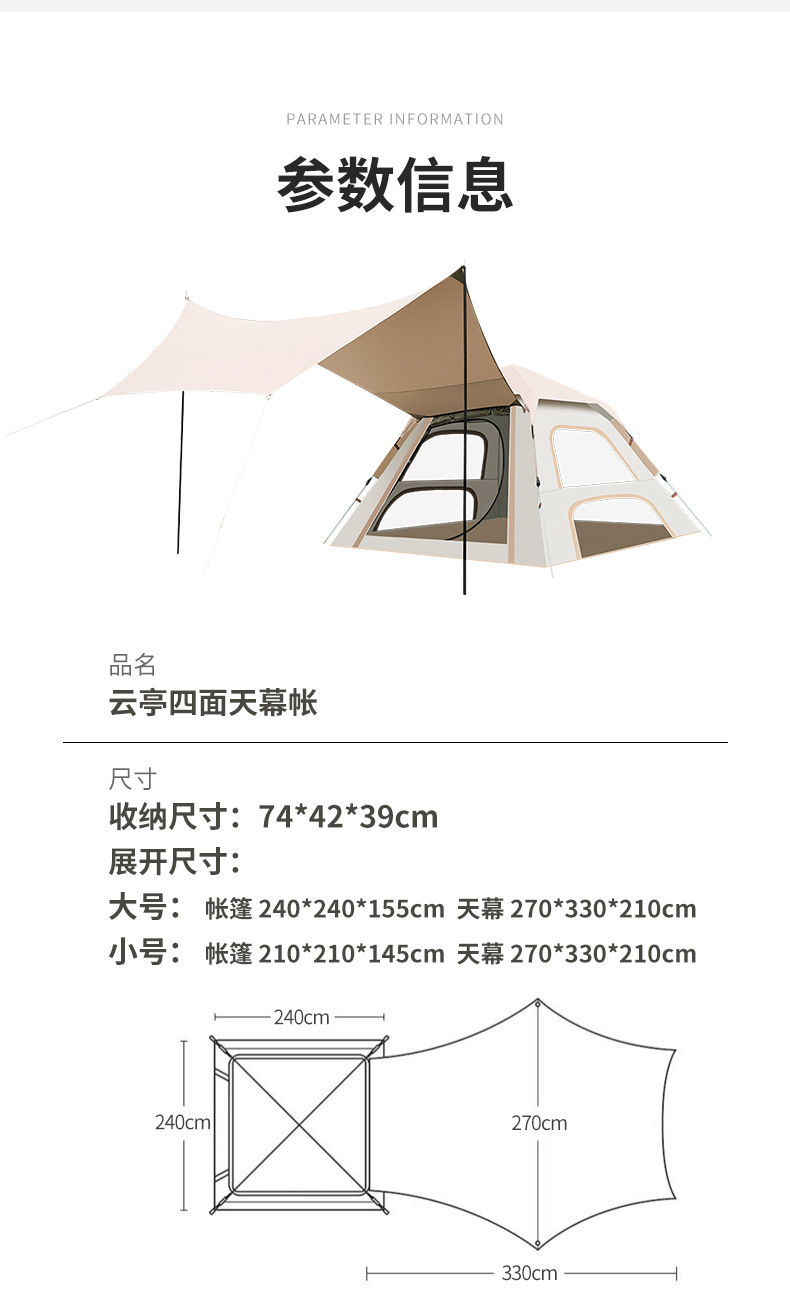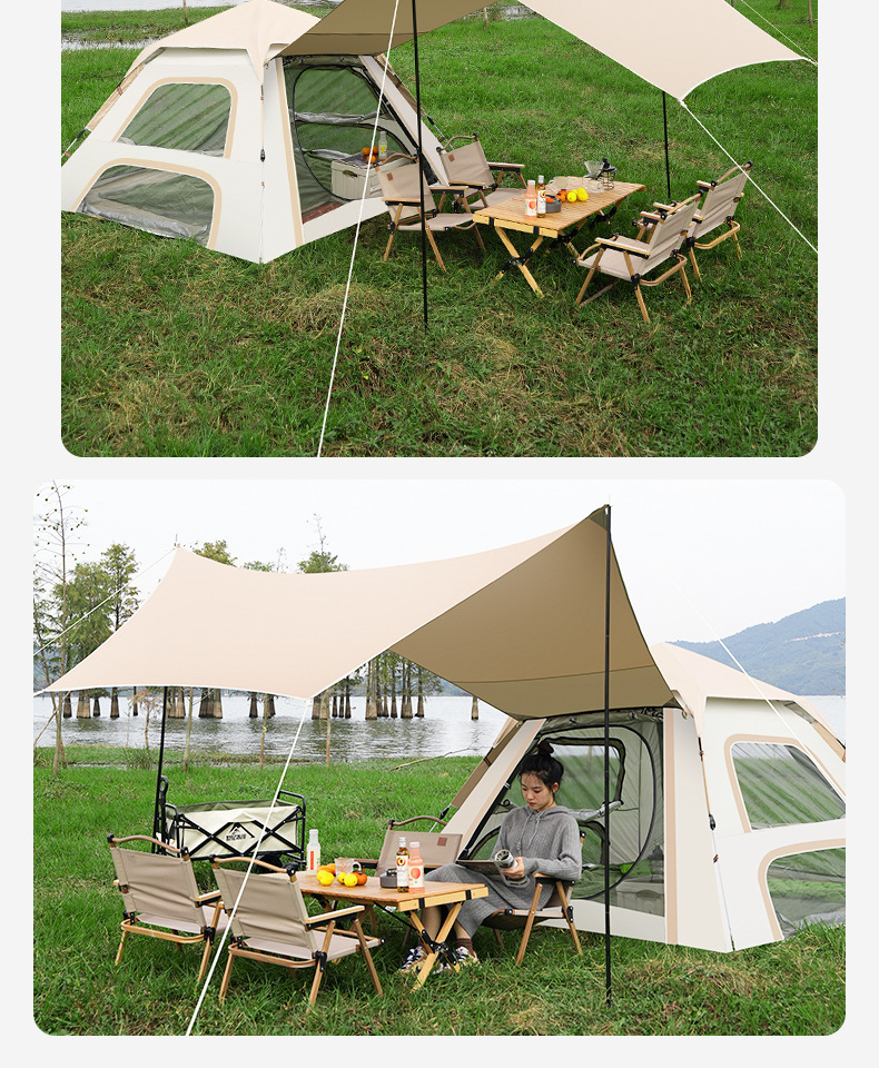텐트 야외 3-4 명 캠핑 캐노피 2-in -1 자동 빠른 오프닝 방수 휴대용 캠핑 접이식 장비