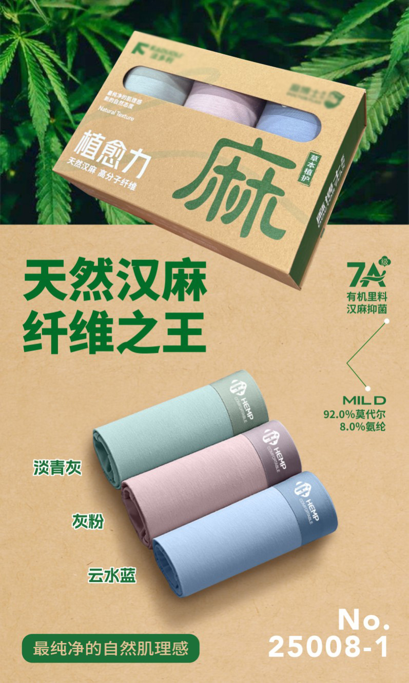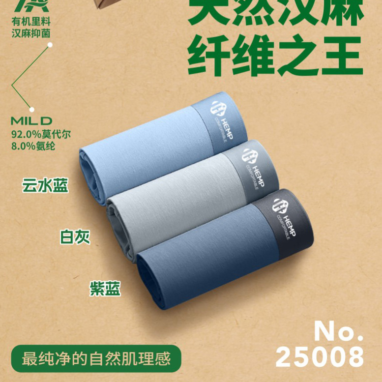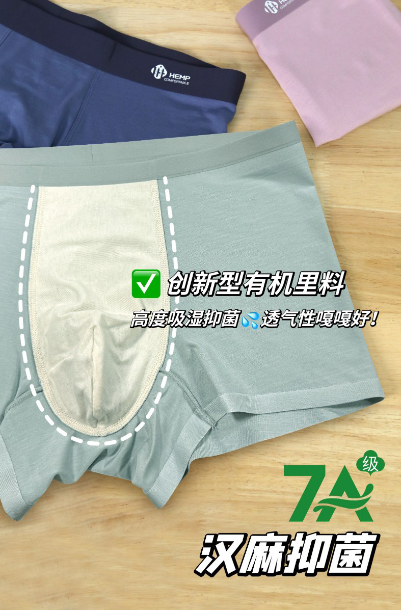 봄과 여름 새로운 남성 복서 통기성 편안한 자연 건강 대마 7A 세균성 소년 복서 팬티