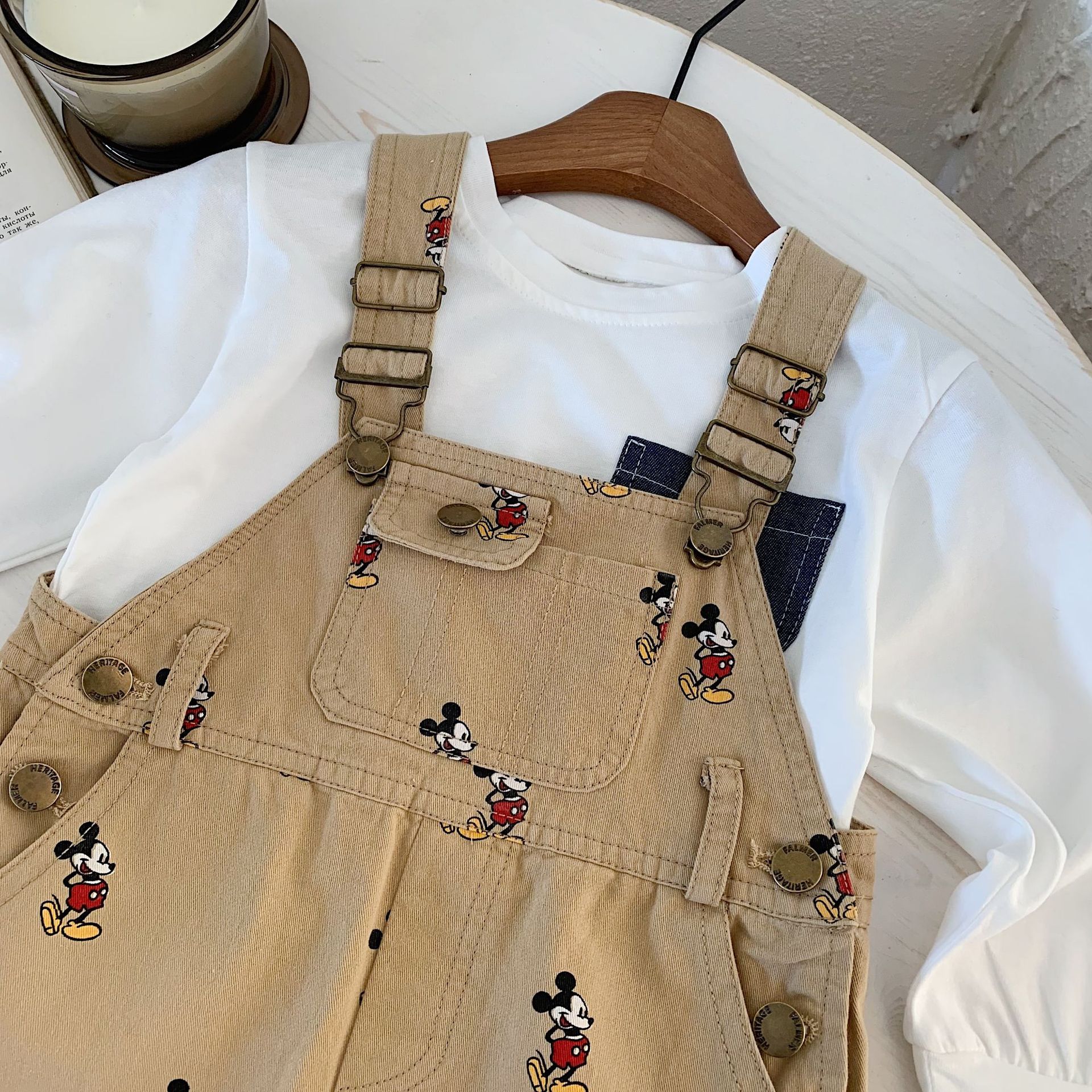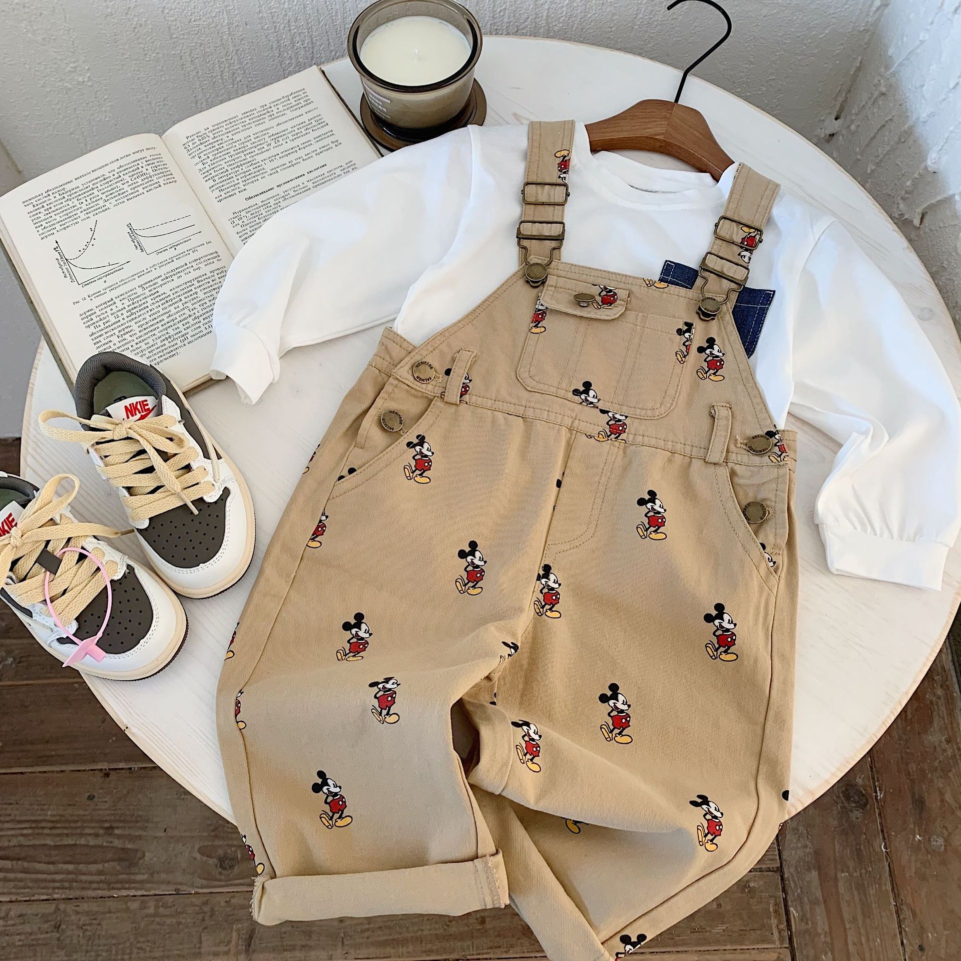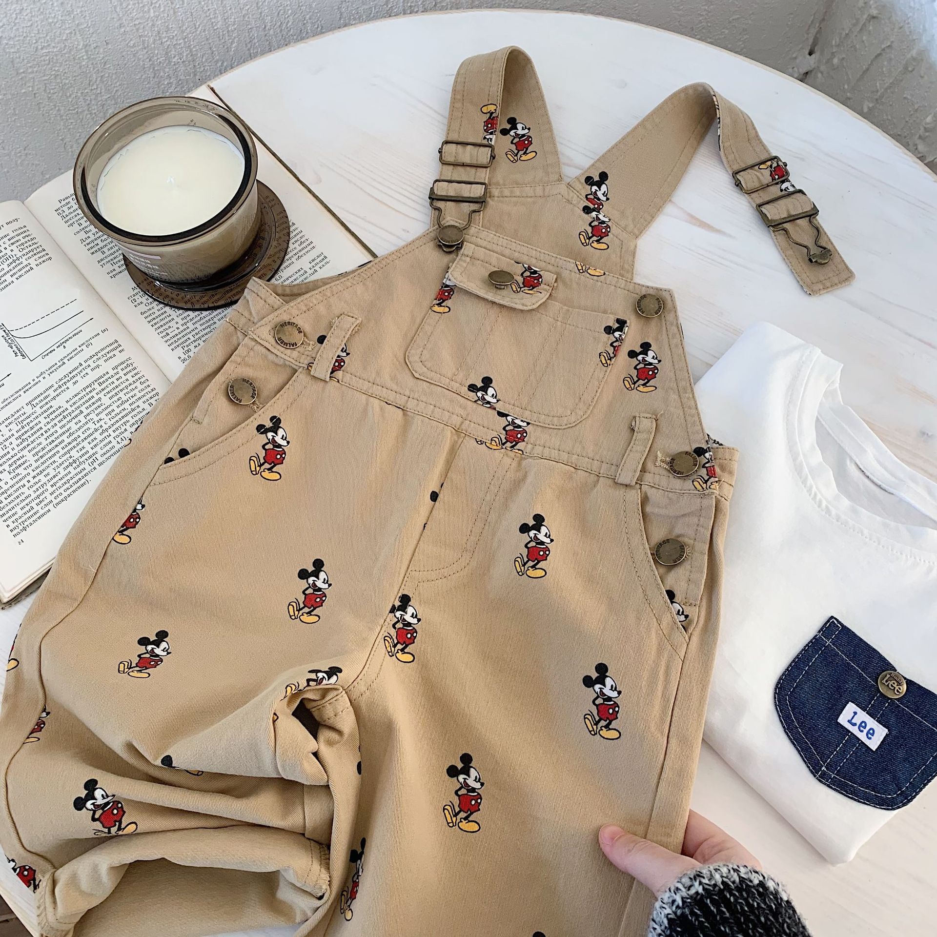 아동 바지 2025 가을 신상품, 남아 및 여아용 만화 프린트 멜빵바지, 유아용 패셔너블한 멜빵바지스토어 가기