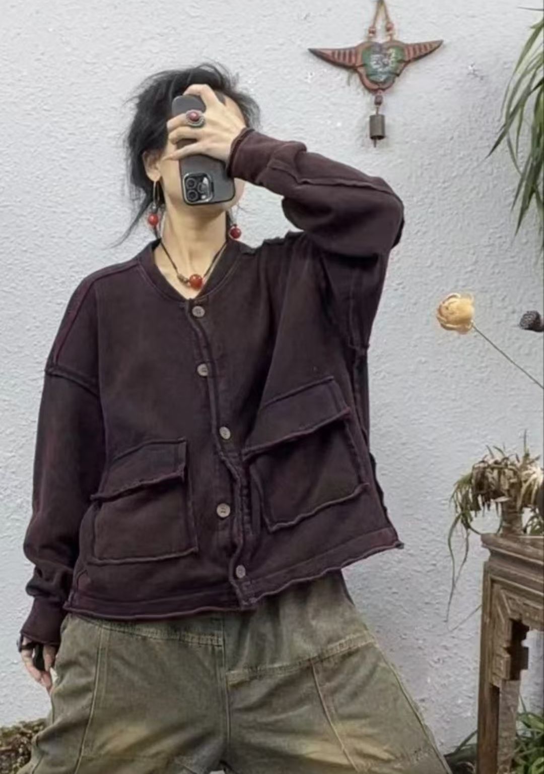 빈티지 고민 프라이드 컬러 스웨터 코트 여성용 드레스 포켓 2025 봄 새로운 느슨한 올 매치 재킷 탑 조수스토어 가기