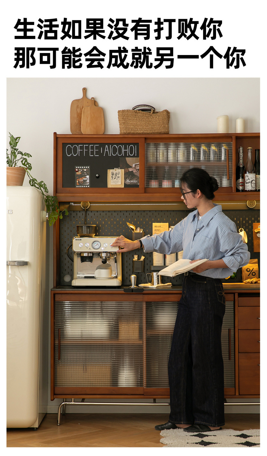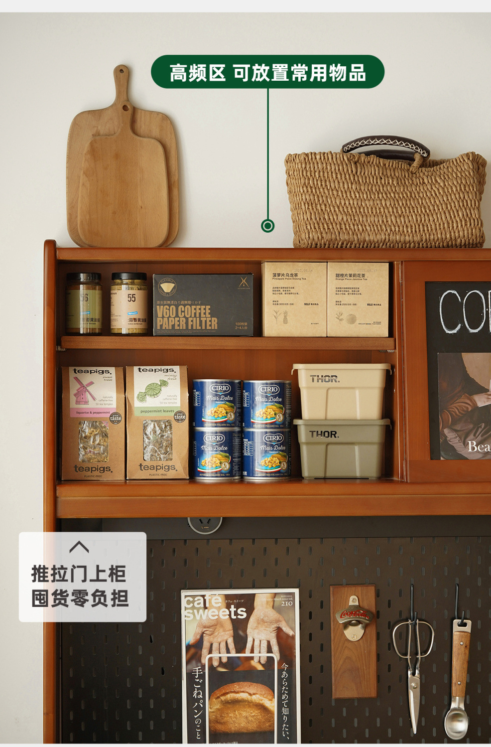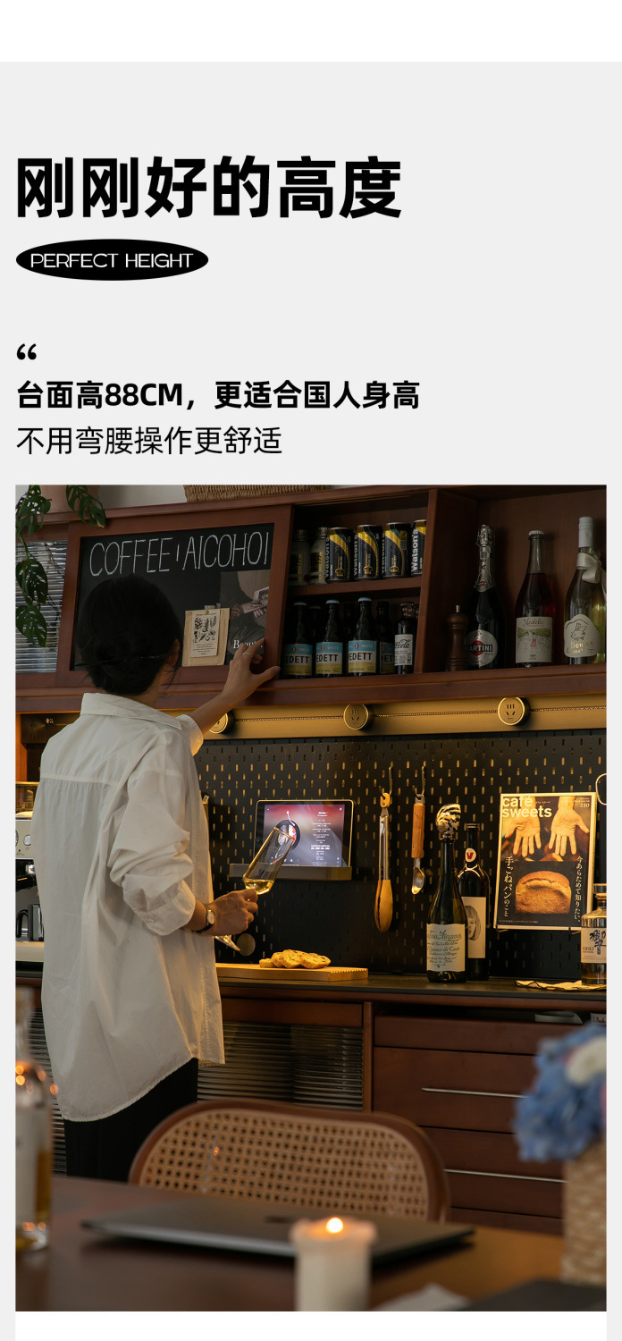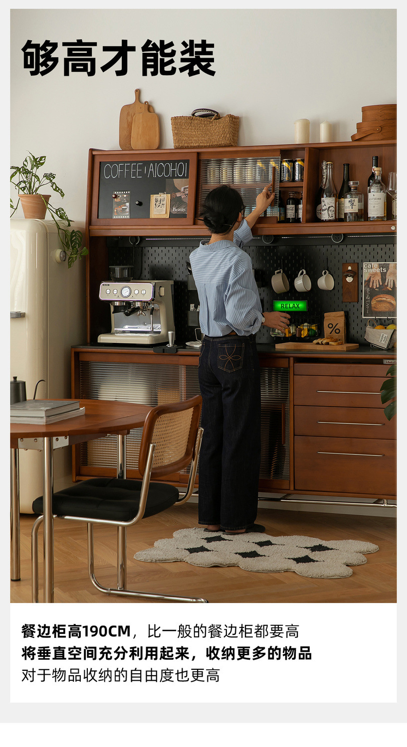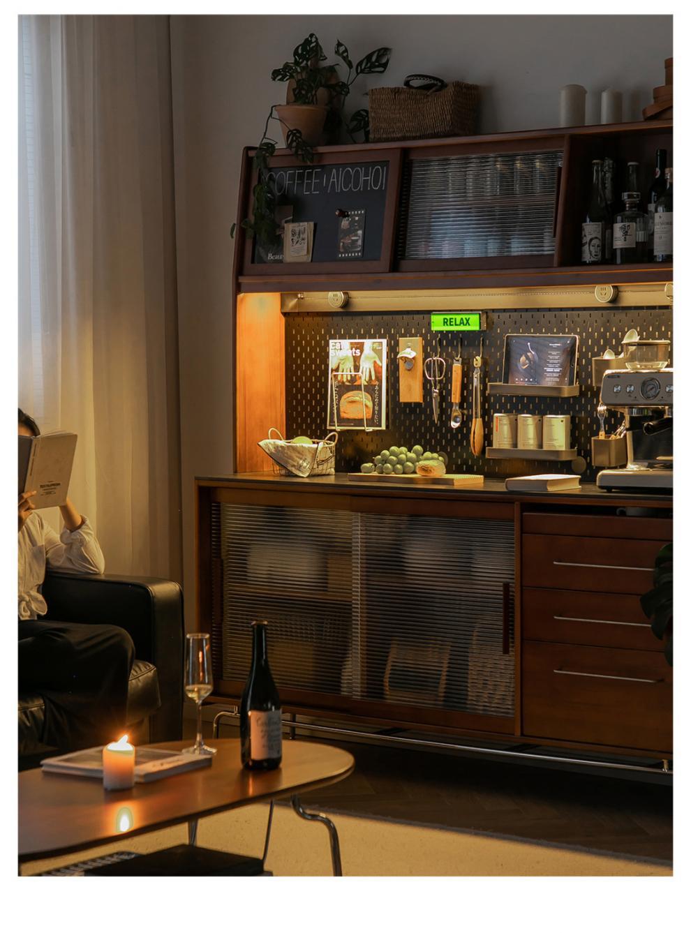 XW 노르딕 레트로 솔리드 우드 사이드 보드 높은 캐비닛 벽 통합 주방 와인 캐비닛 록 보드 스토리지 캐비닛스토어 가기