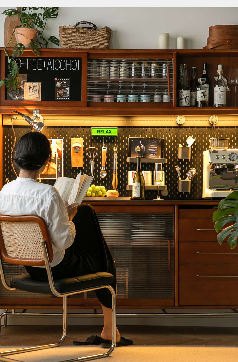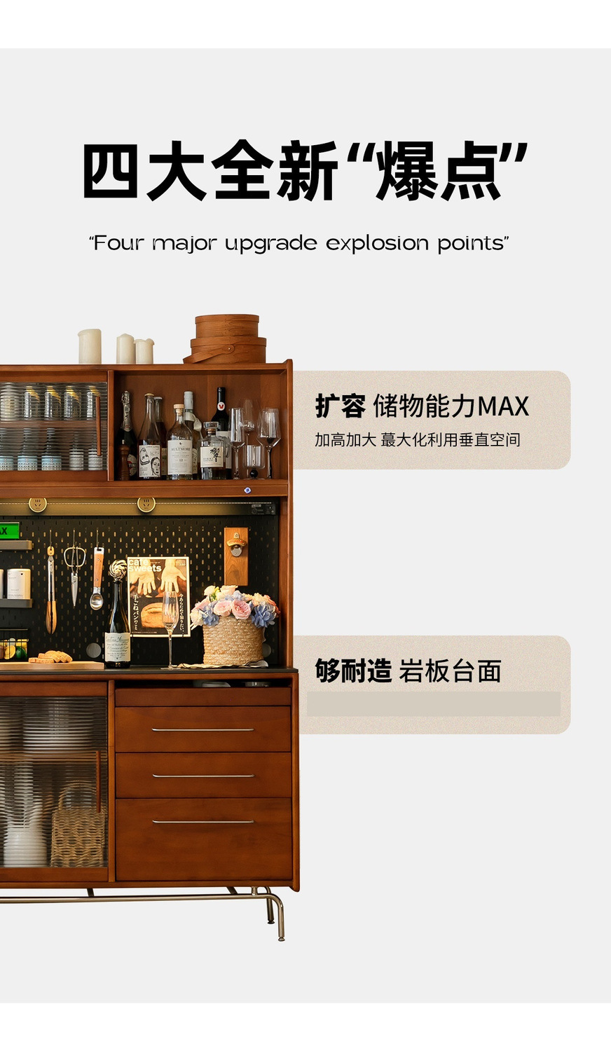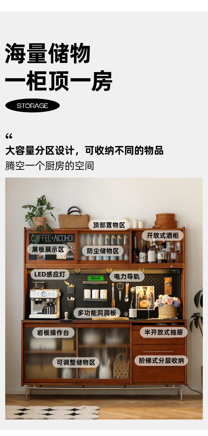 XW 노르딕 레트로 솔리드 우드 사이드 보드 높은 캐비닛 벽 통합 주방 와인 캐비닛 록 보드 스토리지 캐비닛