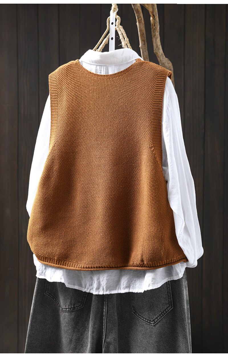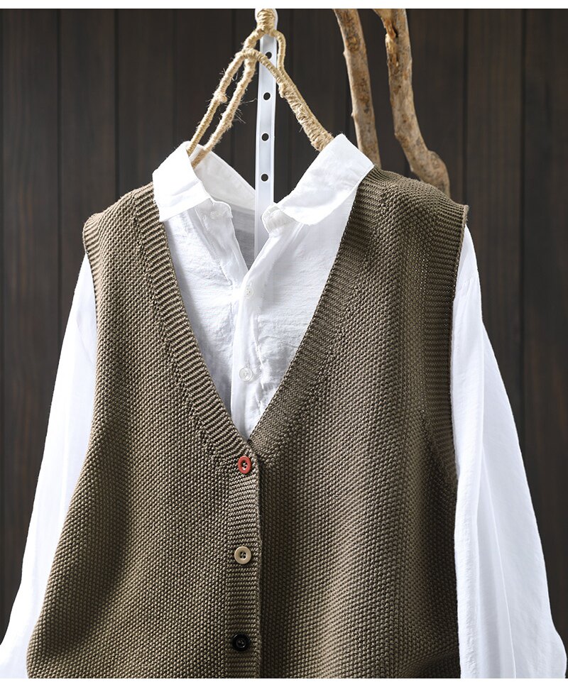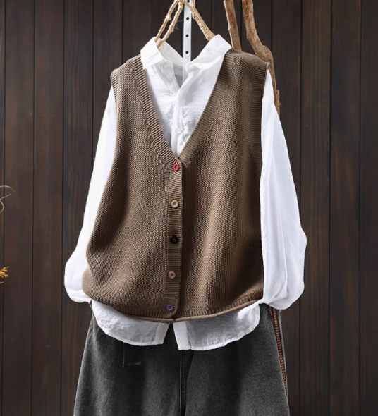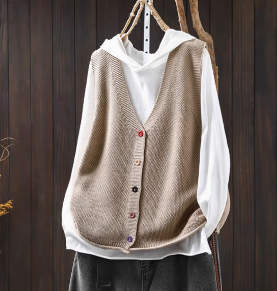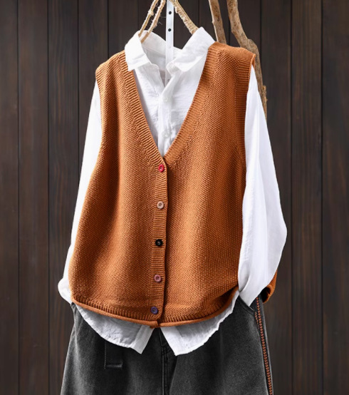봄 새로운 컬러 버튼 V 넥 코튼 니트 조끼 여성의 느슨한 슬리밍 캐주얼 스태킹 말벌 2511스토어 가기