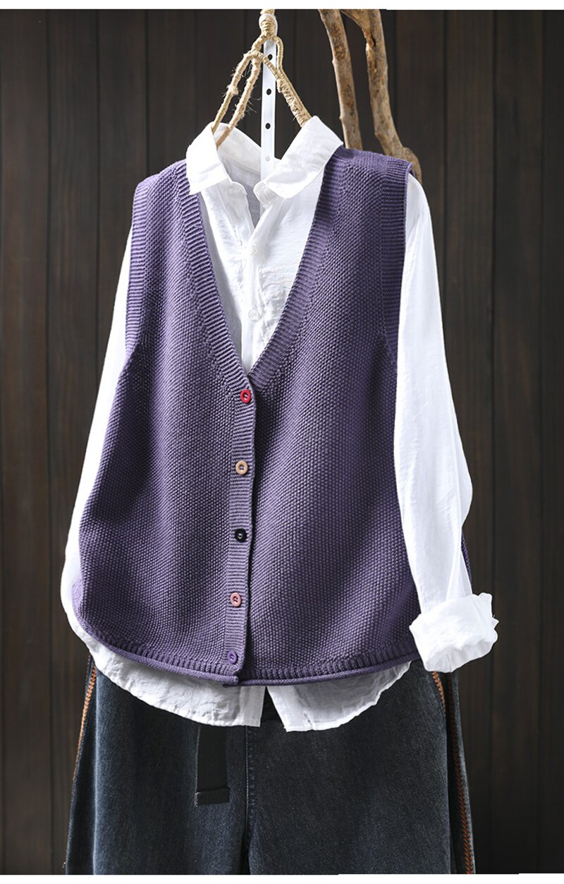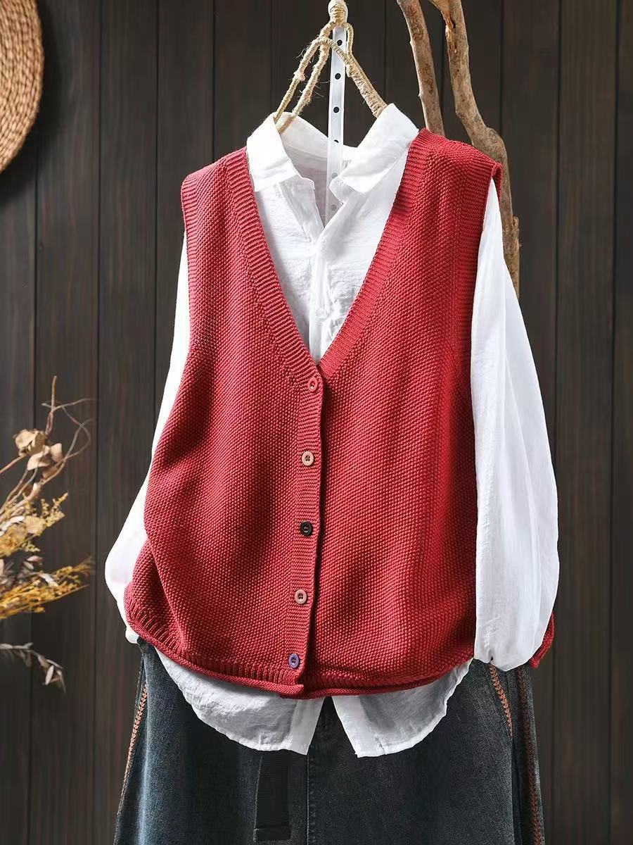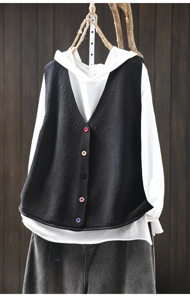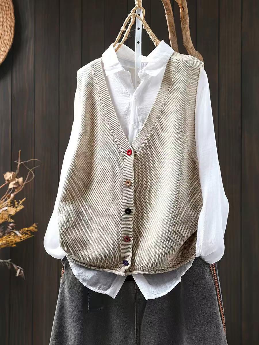 봄 새로운 컬러 버튼 V 넥 코튼 니트 조끼 여성의 느슨한 슬리밍 캐주얼 스태킹 말벌 2511
