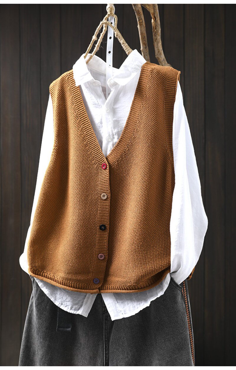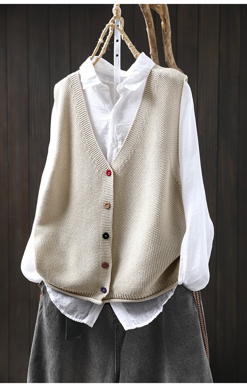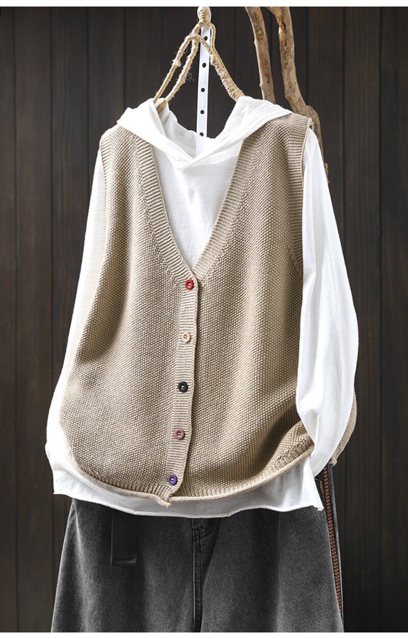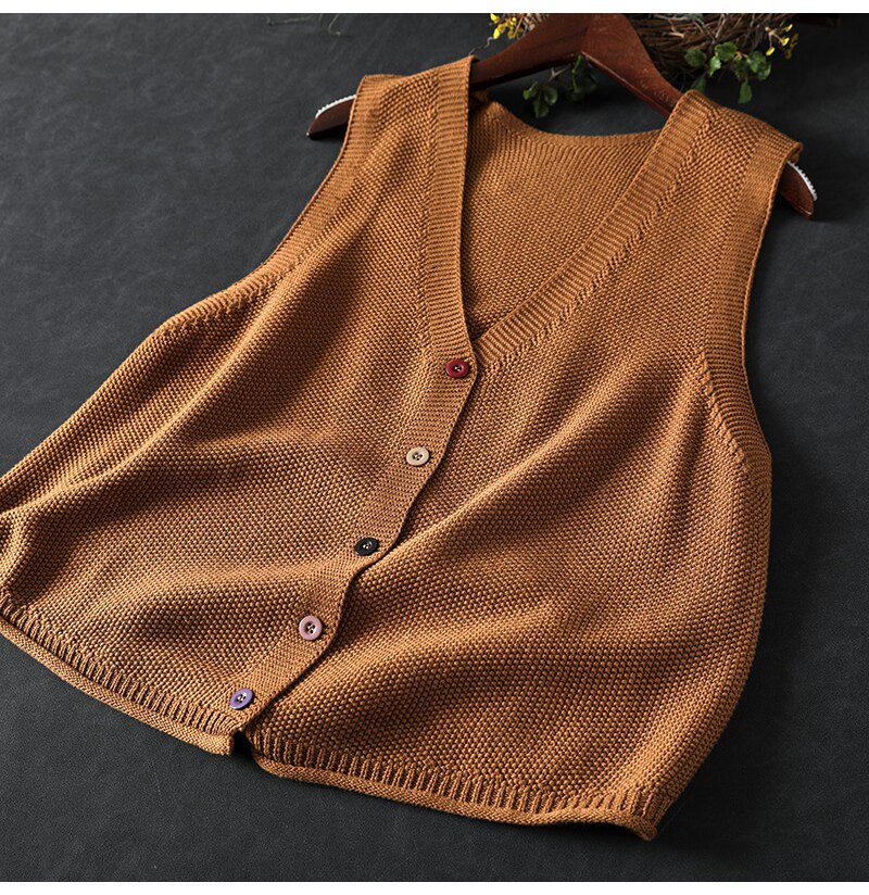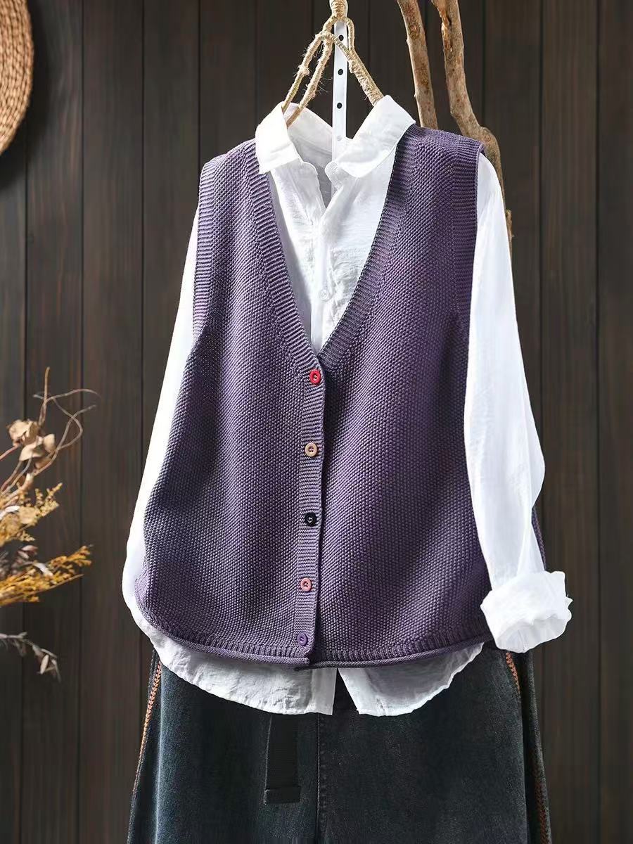 봄 새로운 컬러 버튼 V 넥 코튼 니트 조끼 여성의 느슨한 슬리밍 캐주얼 스태킹 말벌 2511
