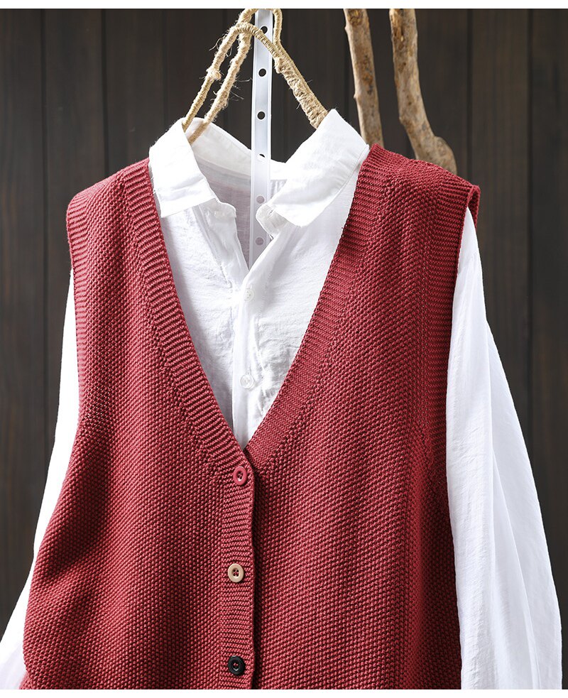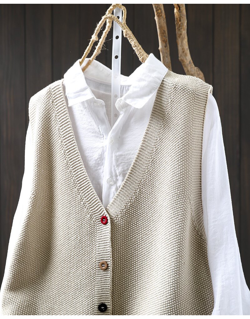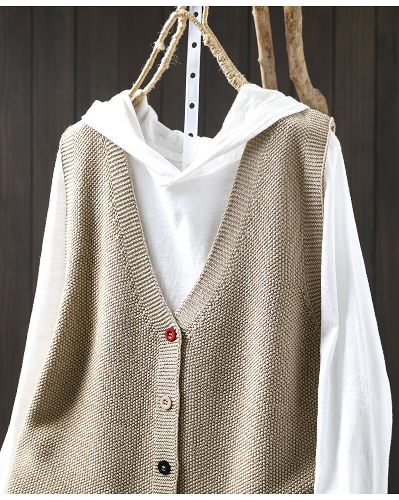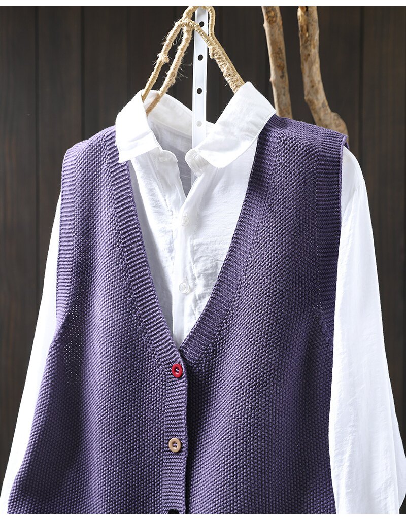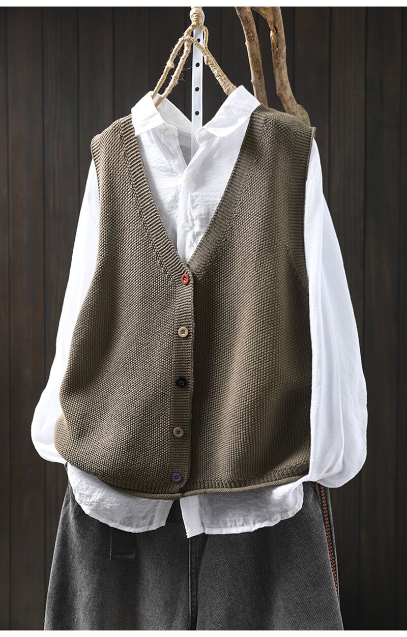 봄 새로운 컬러 버튼 V 넥 코튼 니트 조끼 여성의 느슨한 슬리밍 캐주얼 스태킹 말벌 2511