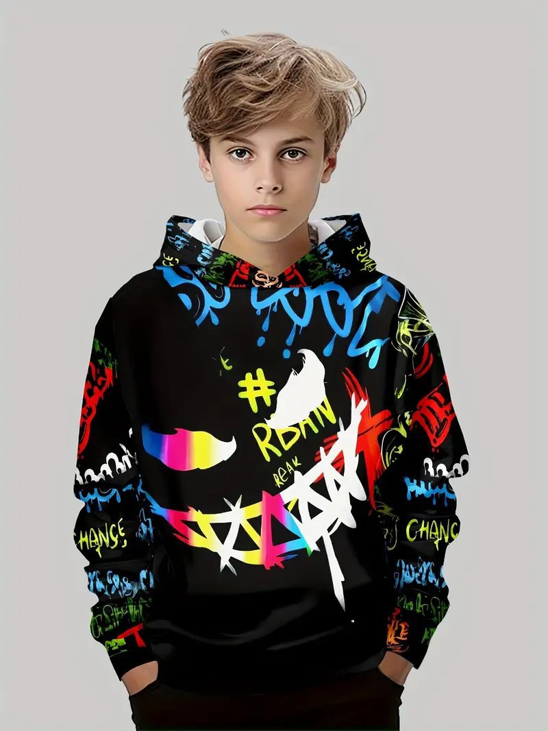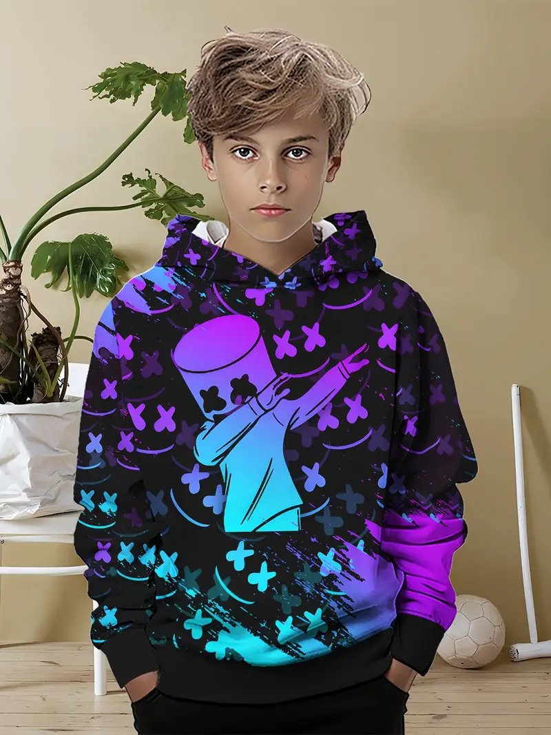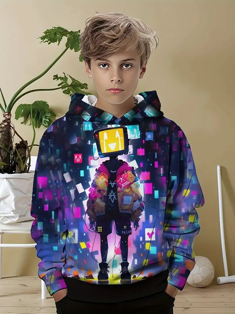 Temu 국경 유럽과 미국의 새로운 패션 인쇄 긴 소매 후드 3D 디지털 인쇄 소년 캐주얼 느슨한 스웨터