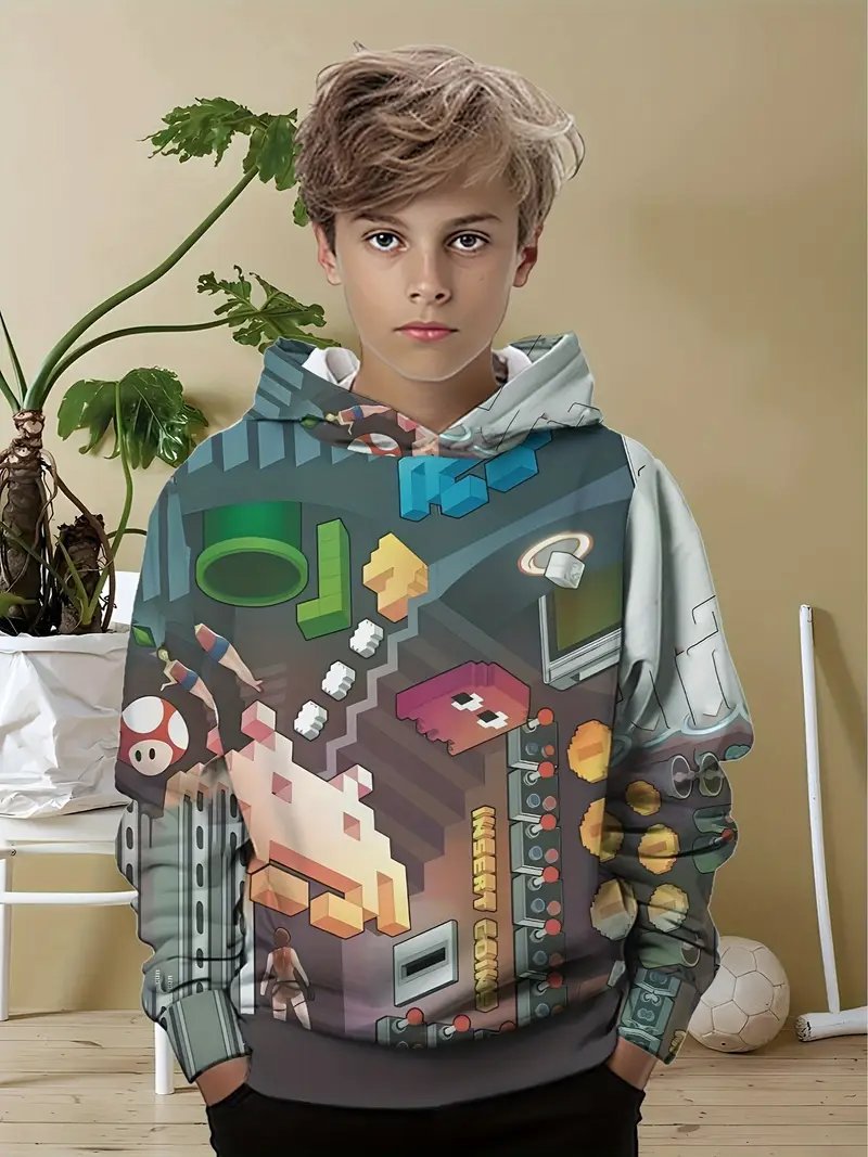 Temu 국경 유럽과 미국의 새로운 패션 인쇄 긴 소매 후드 3D 디지털 인쇄 소년 캐주얼 느슨한 스웨터스토어 가기