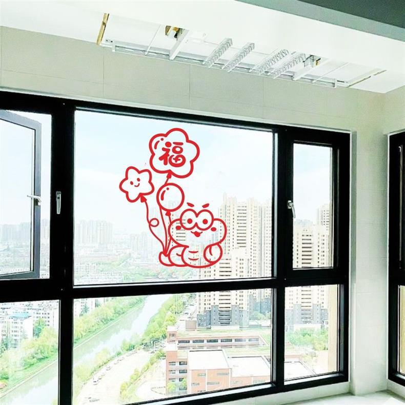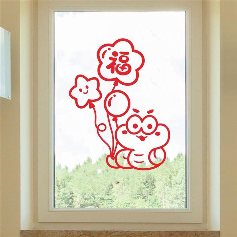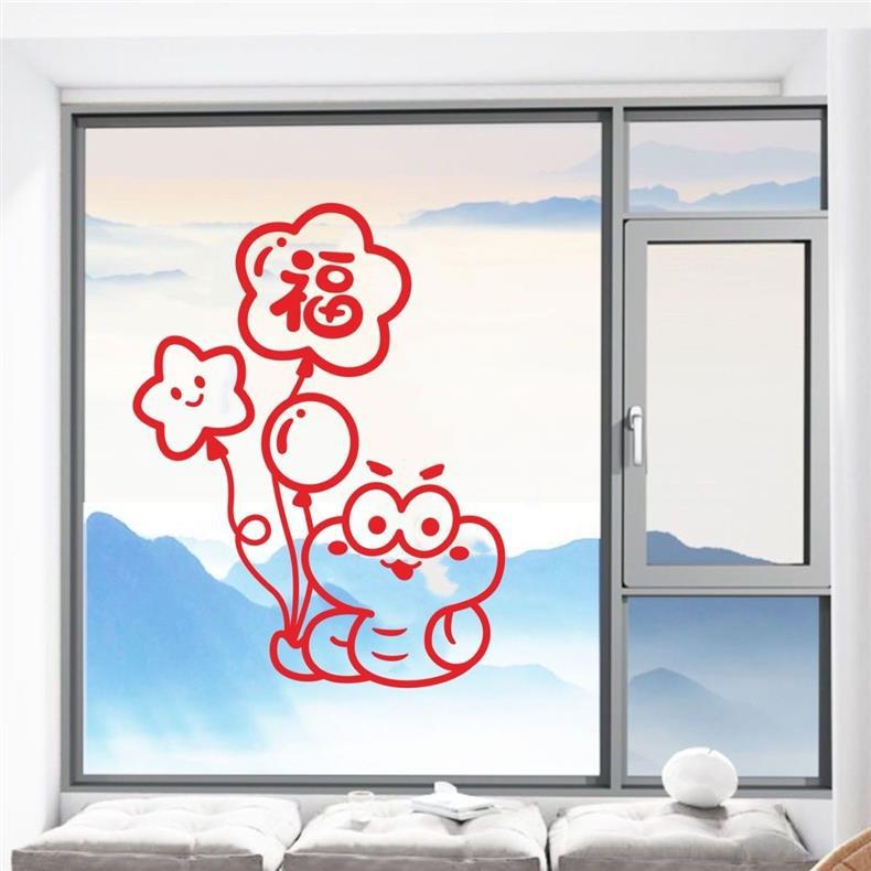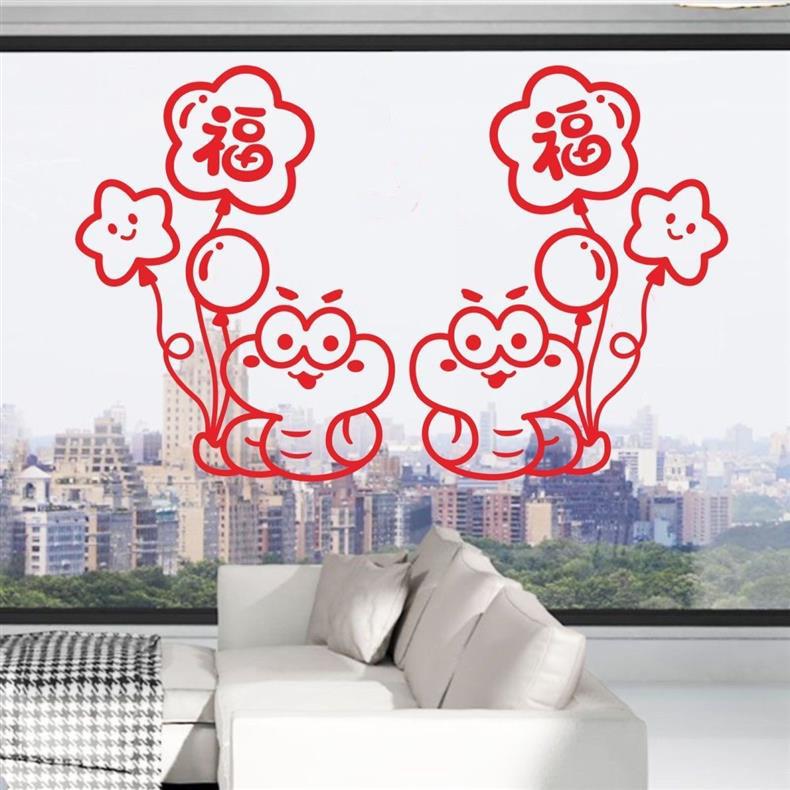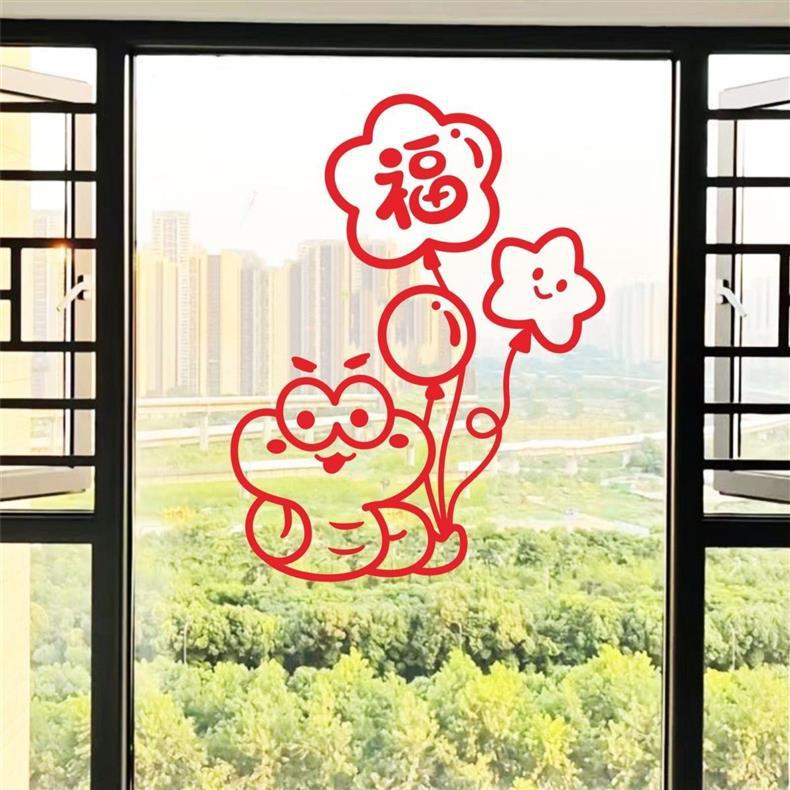 2025 봄 축제 커플 뱀 새해 봄 축제의 해 만화 설날 거실 장식 벽 스티커 유리 문 스티커 설날 창 꽃스토어 가기