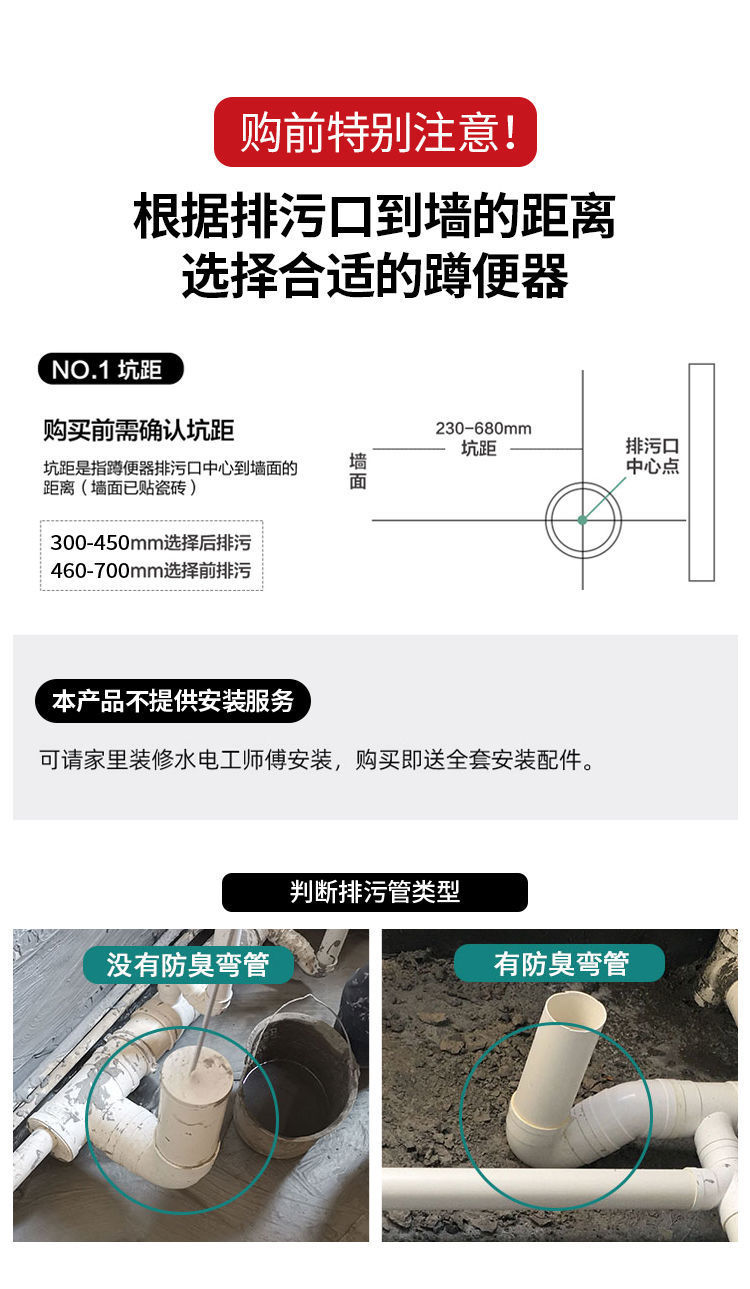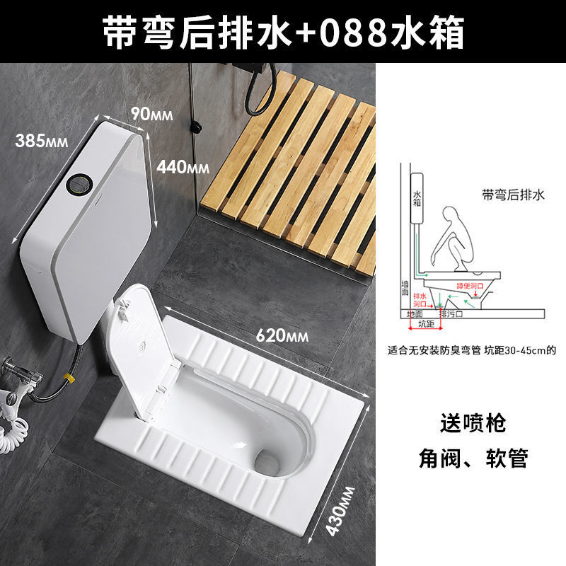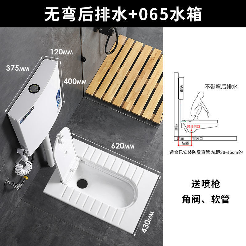 • 별도의 스쿼트 변기 - 구부러진 후면 배수구 없음, 커버 포함