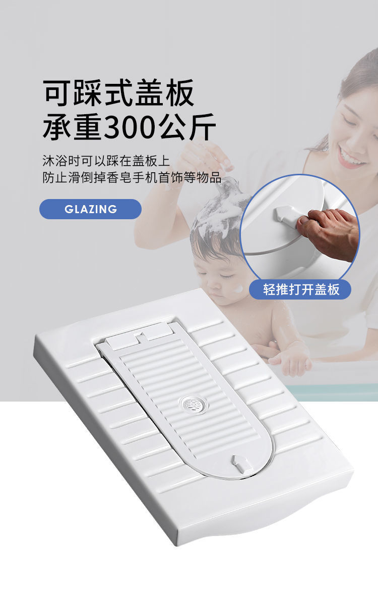 • 별도의 쪼그리고 앉는 변기 - 뚜껑이 있는 전면 배수구가 구부러지지 않음
