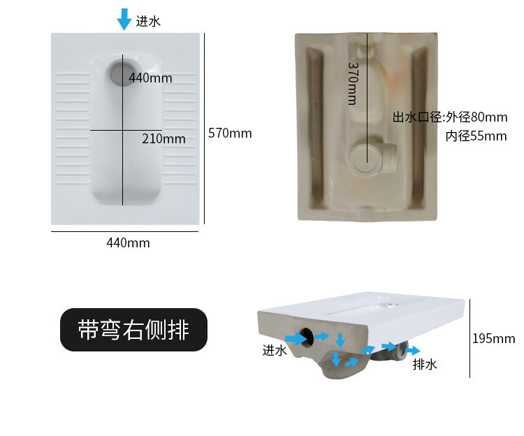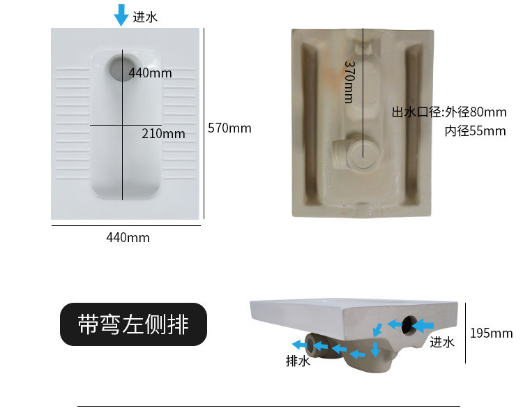 • 후면 수평 배수 스쿼트 변기 + A형 물탱크