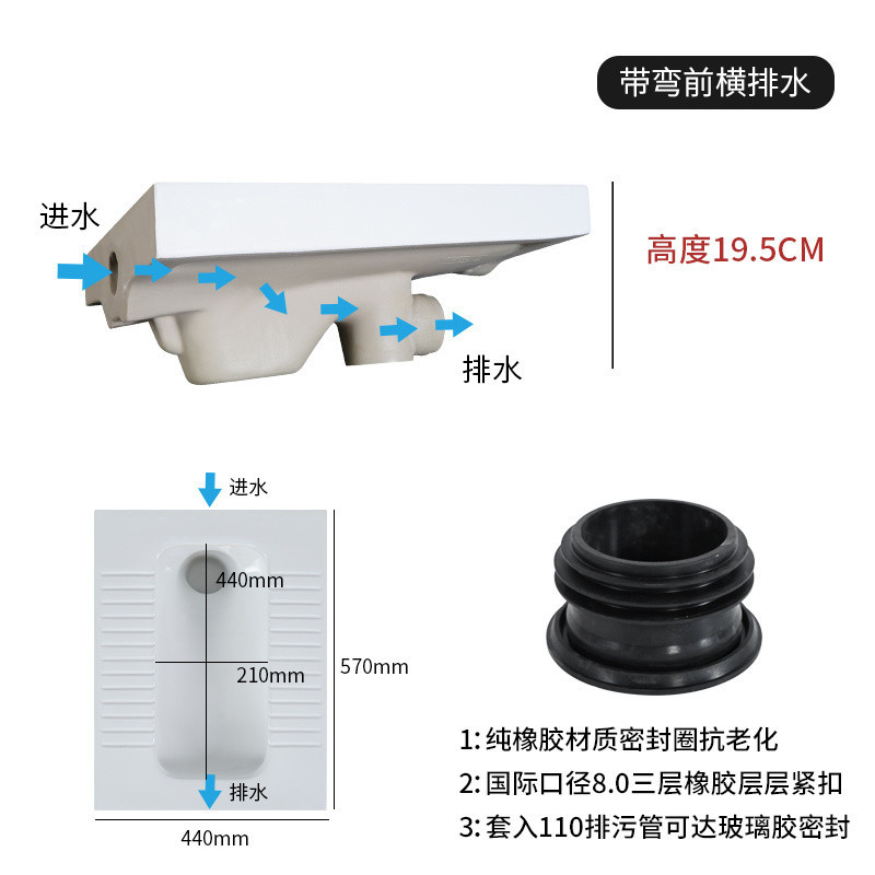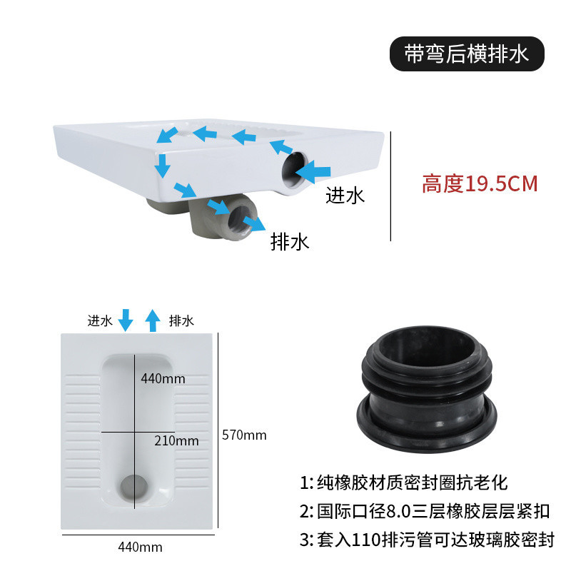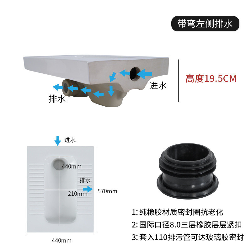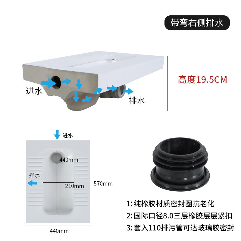 Yf3 울트라 얇은 스쿼팅 화장실 19cm 쪼그리고 앉는 화장실 왼쪽 및 오른쪽 배수 전면 수평 행 곡선 화장실 벽 행스토어 가기