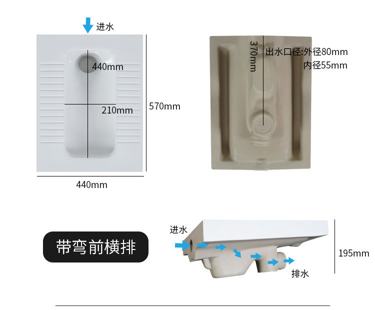 • 전면 수평 배수 스쿼트 변기 + C형 물탱크