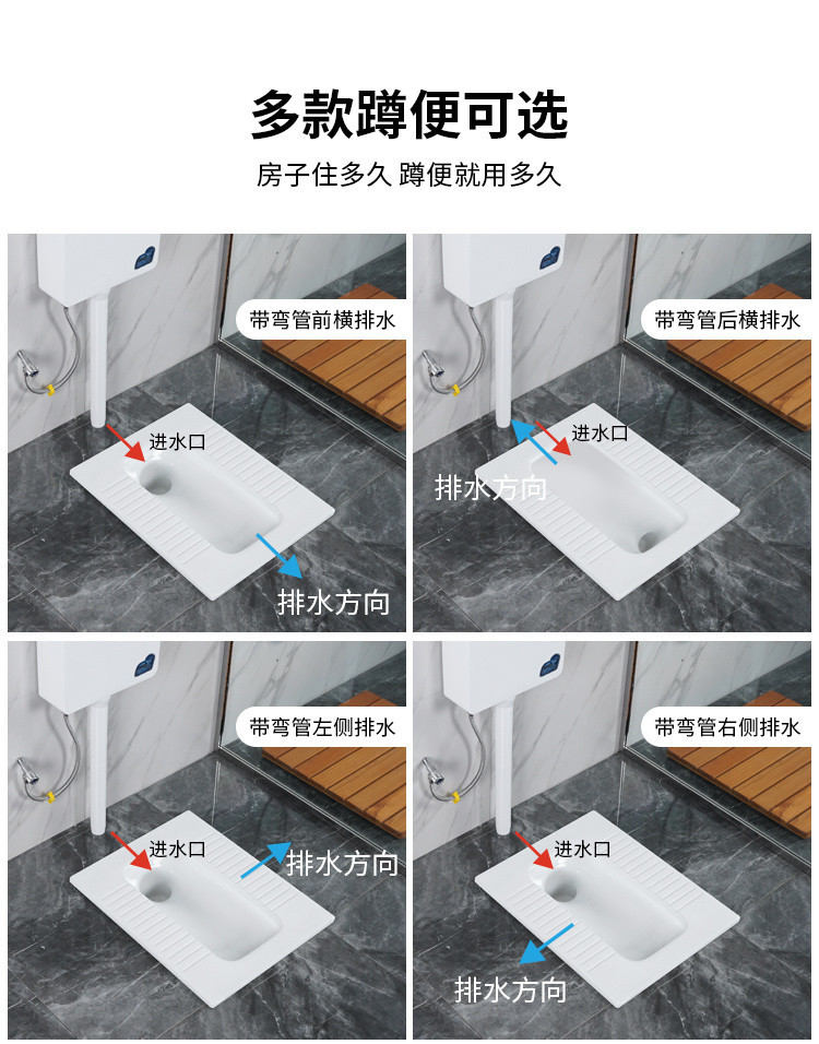 • 후면 수평 배수 스쿼트 변기 + C형 물탱크