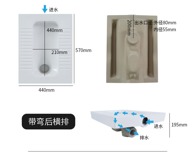 • 후면 수평 배수 스쿼트 변기 + B형 물탱크