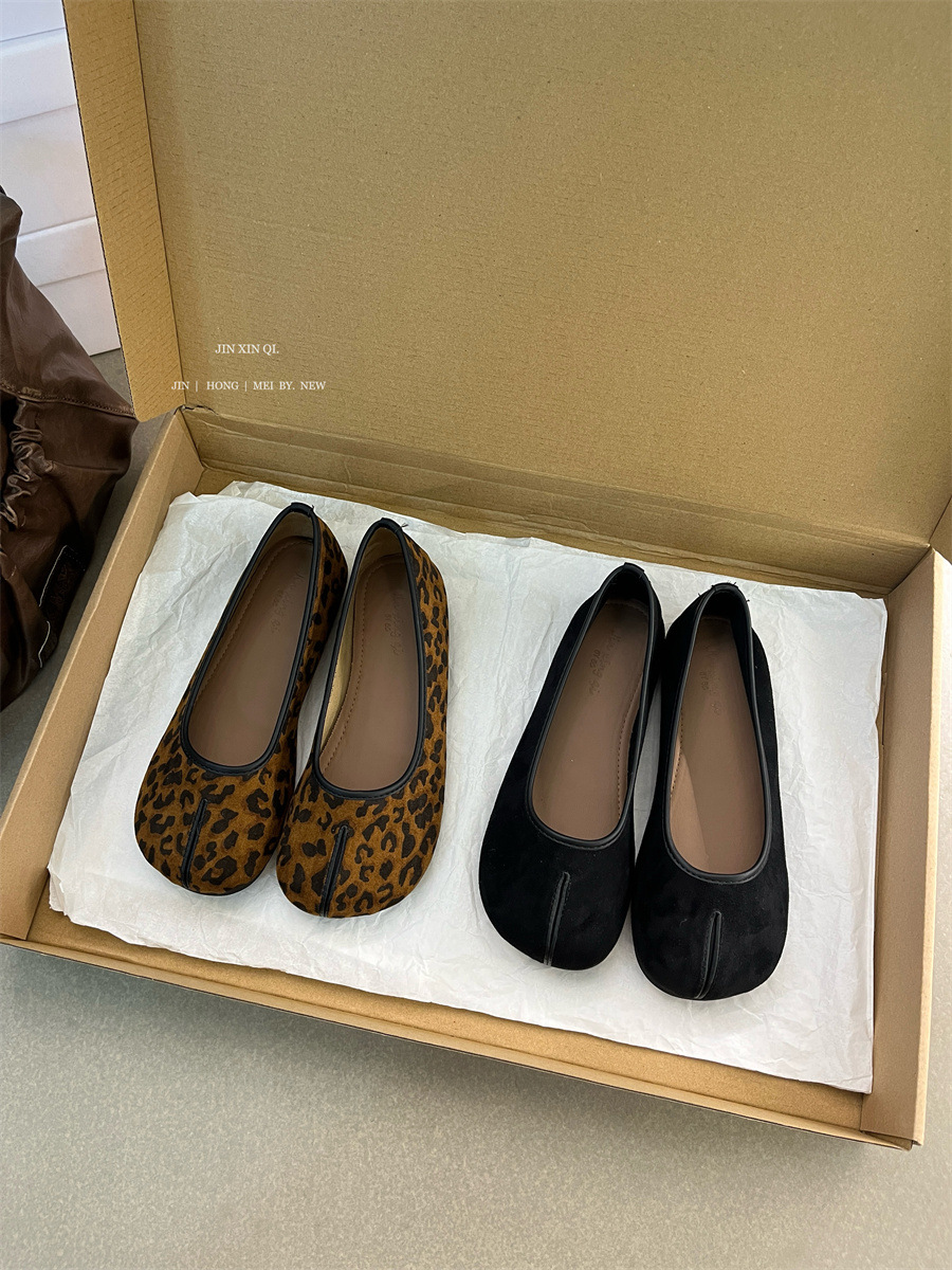 Jinxingqi 빈티지 스웨이드 라운드 발가락 얕은 입 돼지의 트로터 신발 봄과 가을 새로운 한국식 올매치 부드러운 밑창 할머니 신발