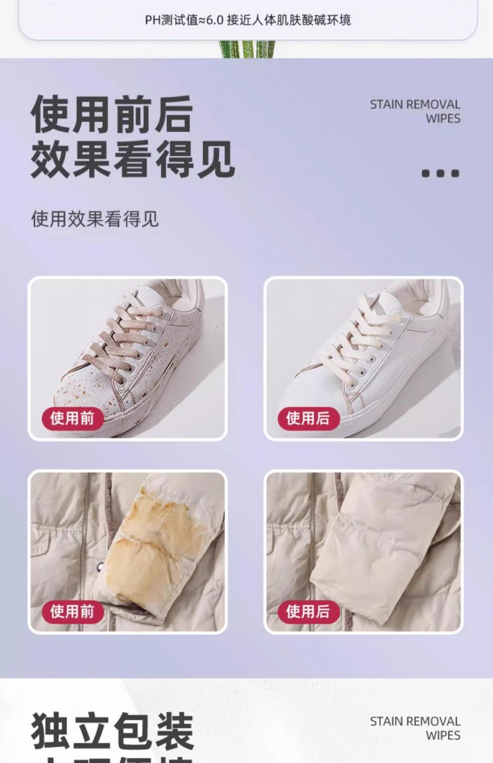 의류 오염 제거 젖은 물티슈 의류 디스펠링 신발 젖은 물티슈, 탈지 및 오염 제거 비상 휴대용 독립 팩스토어 가기