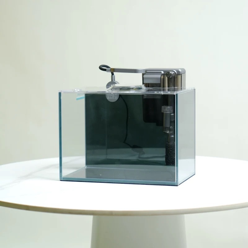 클래식 울트라 화이트 유리 탱크 betta 물고기 생태 탱크 거실 홈 데스크탑 사무실 뚜껑이있는 작은 전체 풍경 세트