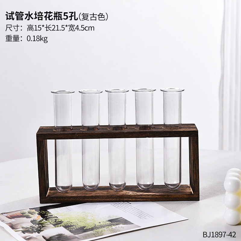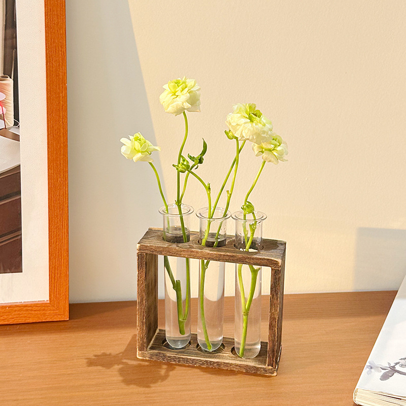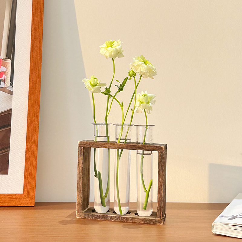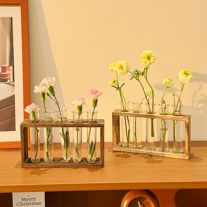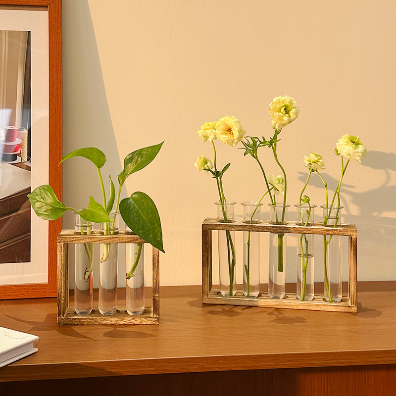 수경 꽃병 테스트 튜브 수경 녹색 식물 꽃 배열 식물 컨테이너 간단한 나무 프레임 장식품 테이블 상단 장식 유리 꽃 꽃병스토어 가기