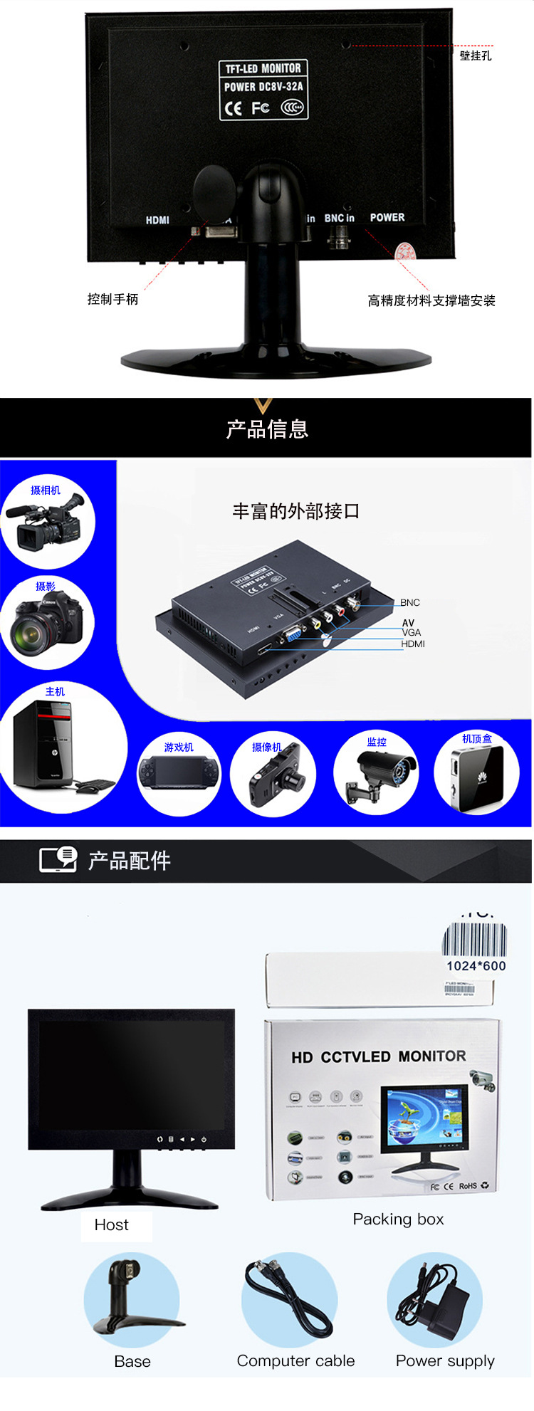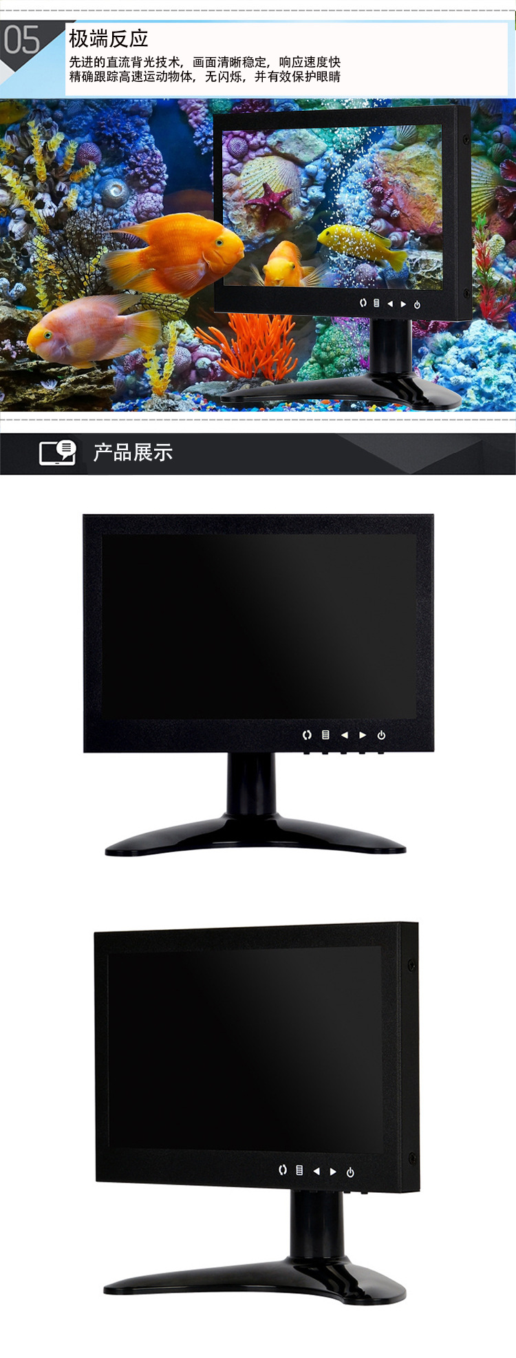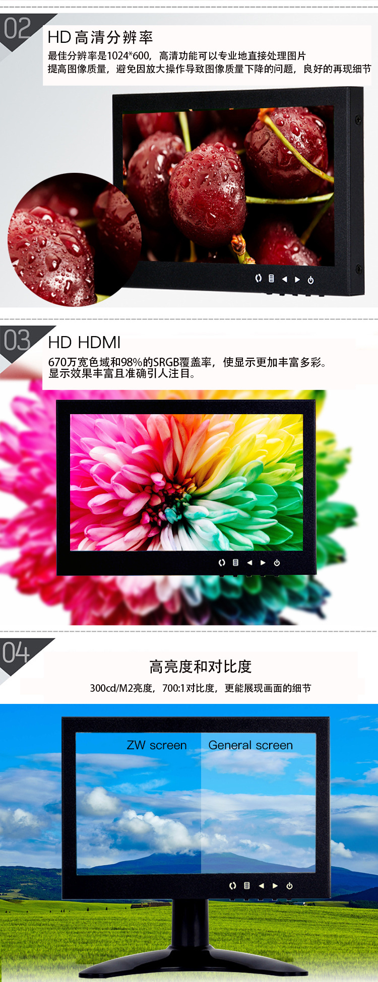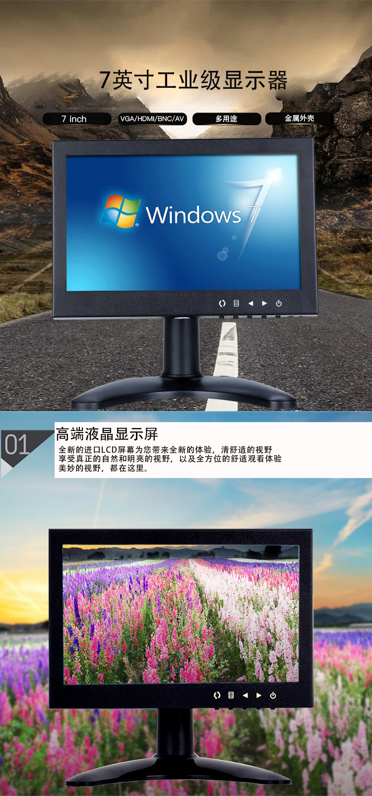 ZWBA 산업 등급 모니터 7 인치 철 케이스 모니터 고화질 방진 및 내구성 기반