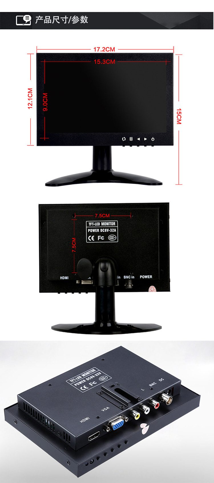 ZWBA 산업 등급 모니터 7 인치 철 케이스 모니터 고화질 방진 및 내구성 기반스토어 가기