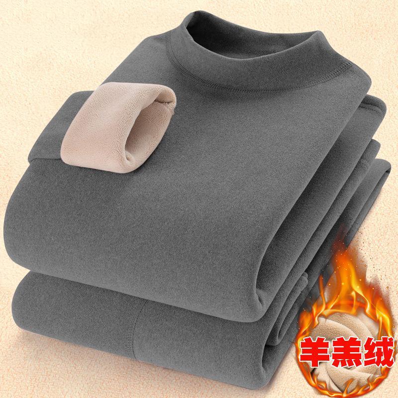 양고기 벨벳 열 속옷 두꺼운 기모 벨벳베이스 난방 중간 칼라 가을 옷과 바지 여성 세트 가을과 겨울스토어 가기