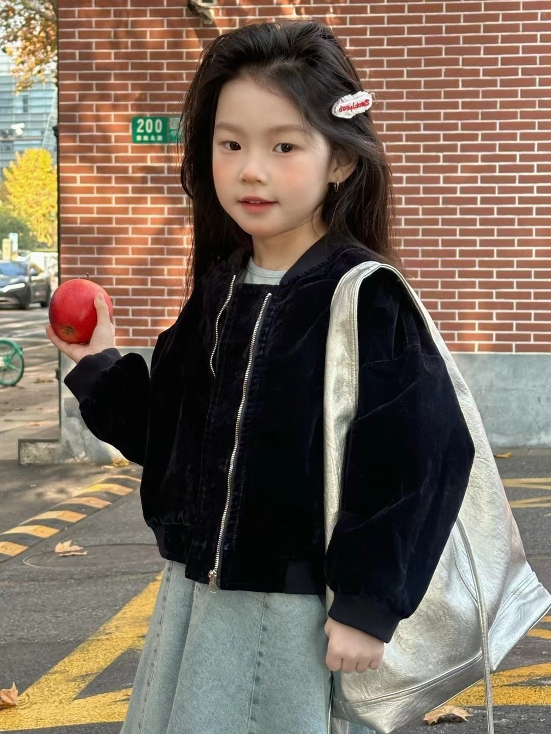 보라 한국 아동복 2025 봄 새 달콤한 소녀 벨벳 걸스 탑 어린이 서양식 짧은 재킷 코트스토어 가기