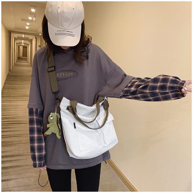 서양식 캔버스 가방 대형 가방 여성 2024 새로운 도착 유행 한국 스타일 올 매치 크로스 백 대용량 어깨 가방 핸드 나인 벨벳스토어 가기