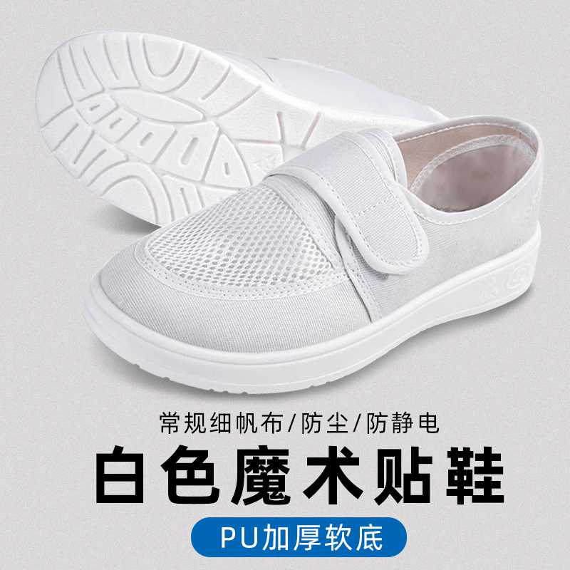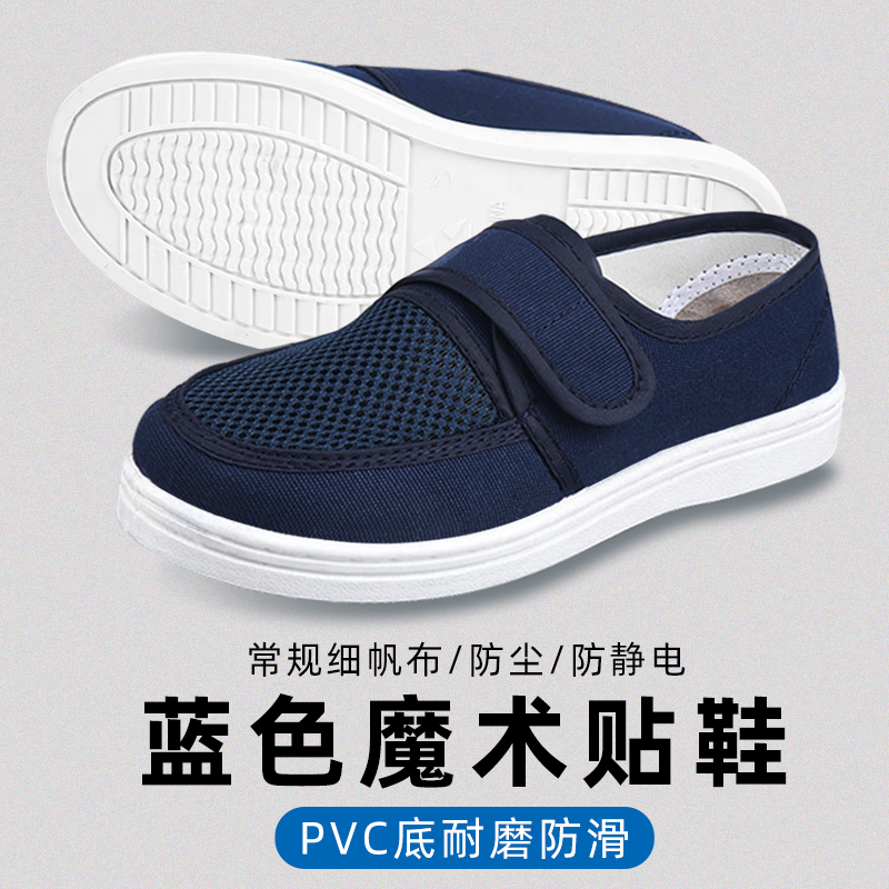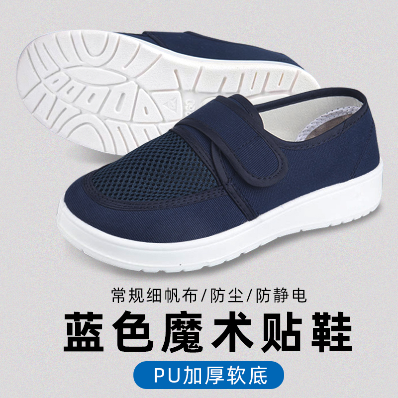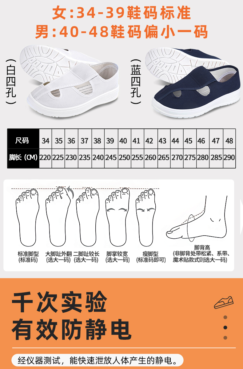정전기 신발은 부드러운 바닥 파란색과 흰색 먼지가없는 작업장 청소 신발 전자 공장 남성과 여성의 정전기 방지 4 홀 신발 통기성스토어 가기