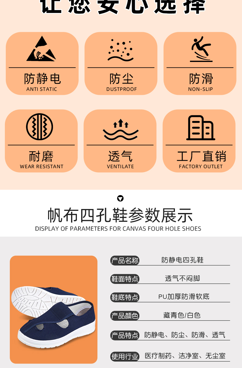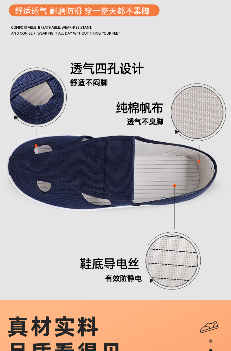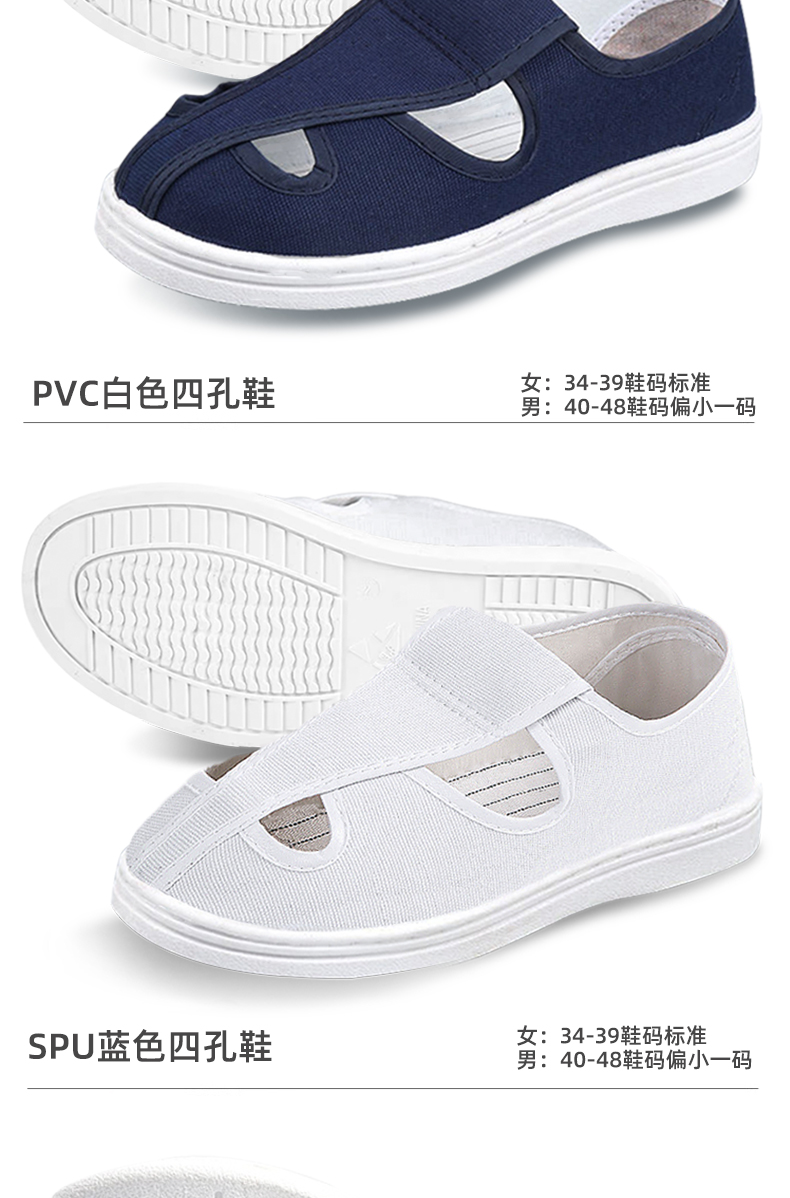 정전기 신발은 부드러운 바닥 파란색과 흰색 먼지가없는 작업장 청소 신발 전자 공장 남성과 여성의 정전기 방지 4 홀 신발 통기성