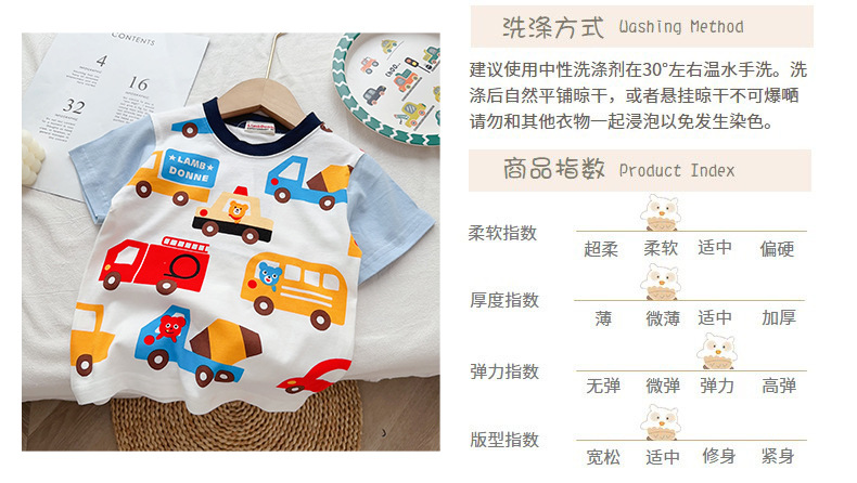 아동용 반팔 티셔츠, 남아용 26년 여름 반팔 만화 티셔츠, 남아용 반팔 상의, 아동복 도매