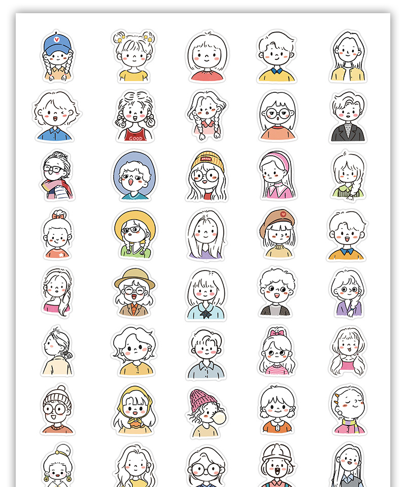 80 스티커 귀여운 간단한 펜 머리 스티커 귀여운 귀여운 귀여운 소녀 창조적 인 장식 노트북 문구 손 계정 DIY 스티커