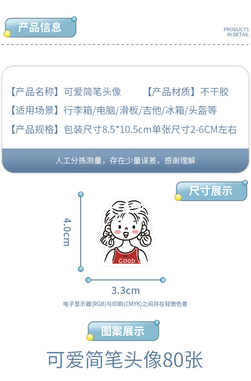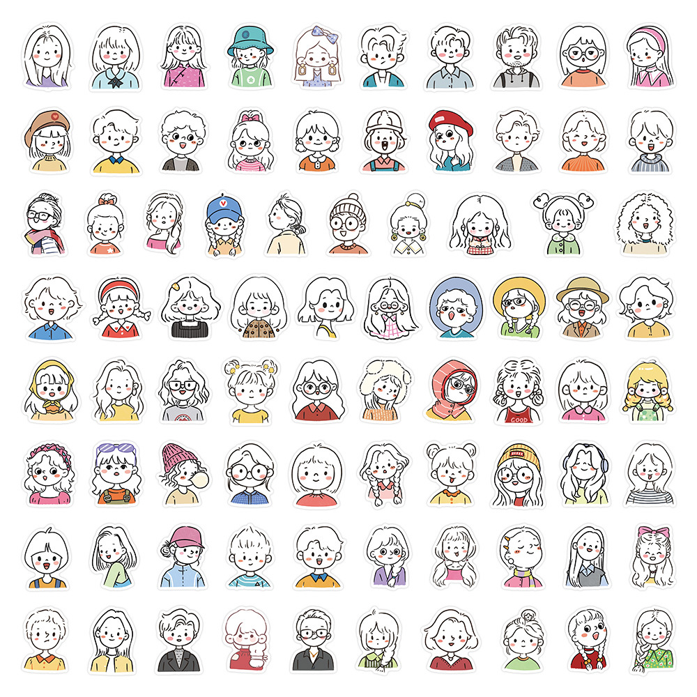 80 스티커 귀여운 간단한 펜 머리 스티커 귀여운 귀여운 귀여운 소녀 창조적 인 장식 노트북 문구 손 계정 DIY 스티커스토어 가기