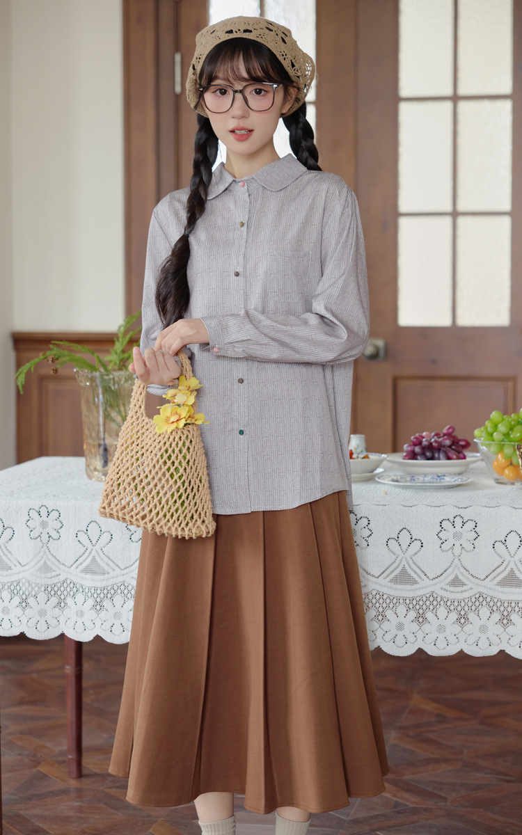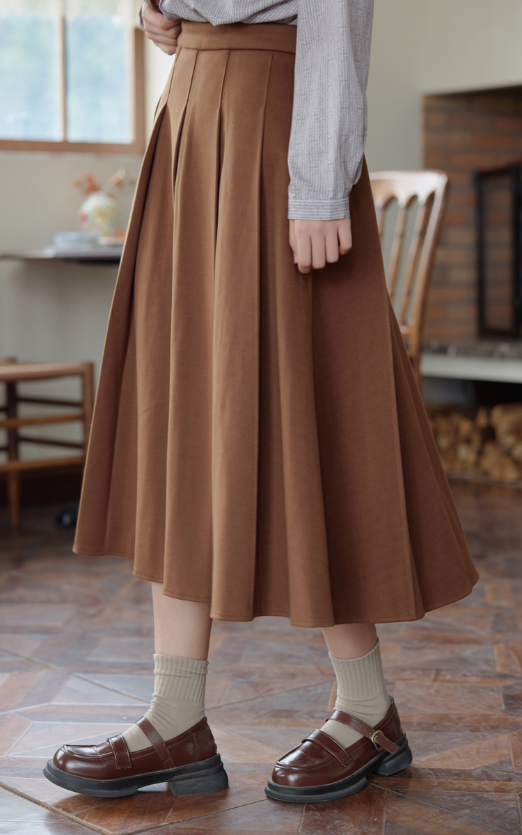 2025 년 초 봄 새로운 프랑스 스타일 레트로 우아한 단색 높은 허리 슬림 중간 길이 주름 된 A 라인 스커트 여성