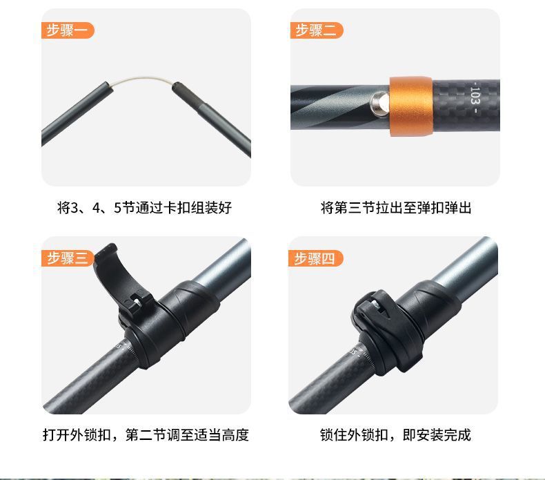 Nuoke 5 섹션 접이식 탄소 섬유 등반 스틱 전문 야외 하이킹 초경량 워킹 스틱 남녀 등반 장비스토어 가기