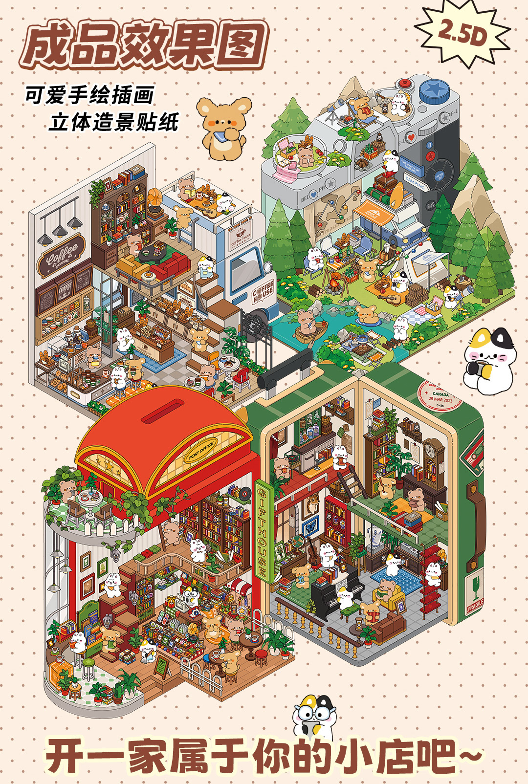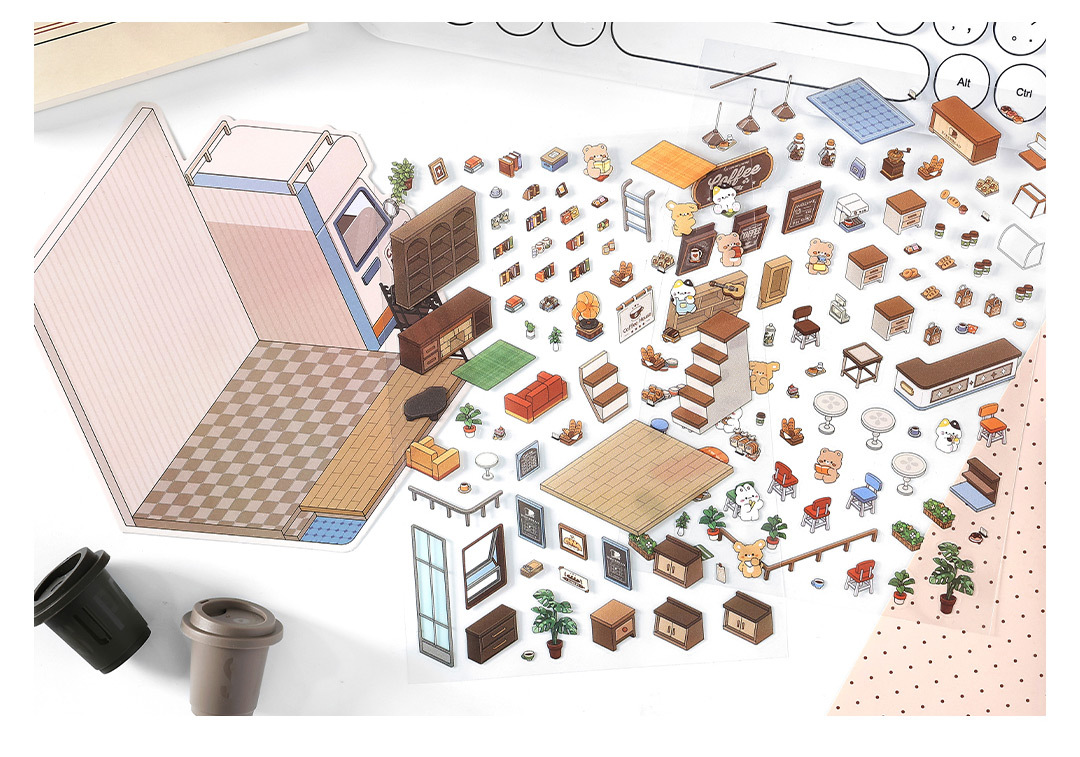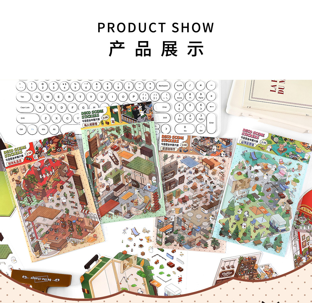 인필미 오늘도 영업중! 제6탄 풍경 스티커 미니어처 장식 스티커 이우 모옌 문화용품스토어 가기