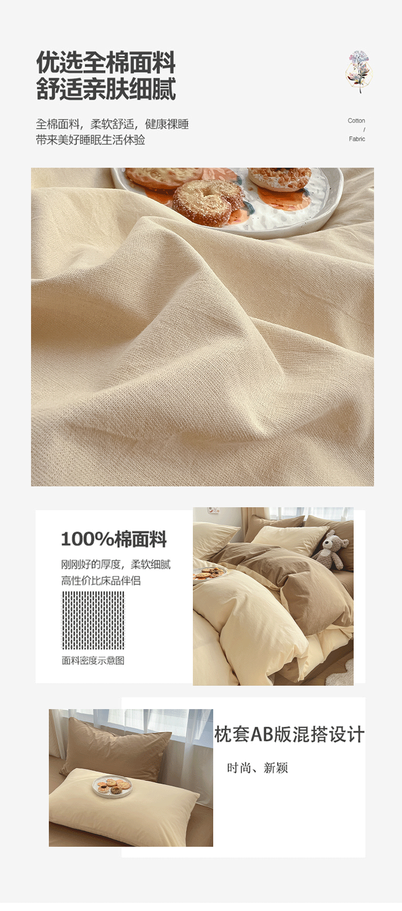 • 1.8m 침대 시트 모델 [업그레이드된 클래스 A 면, 산모 및 유아에게 적합] - 200x230 이불에 적합®