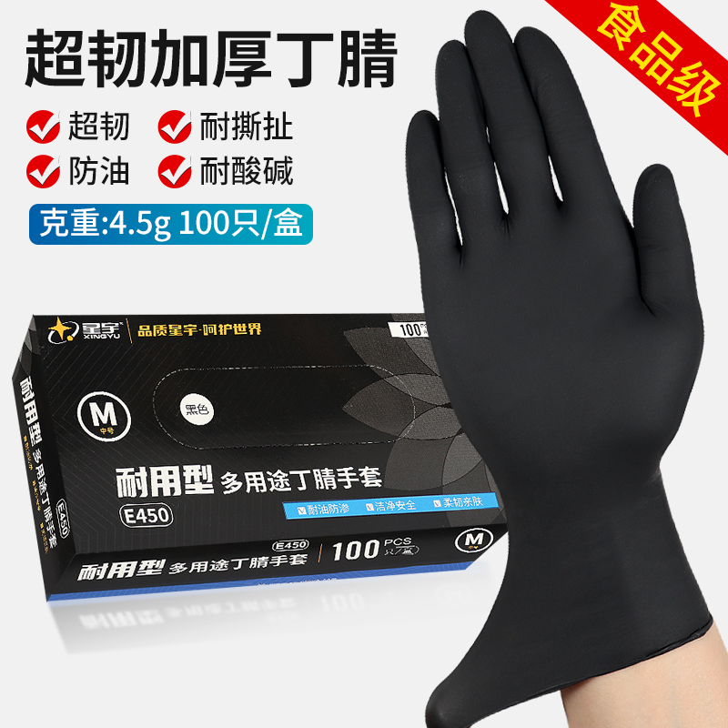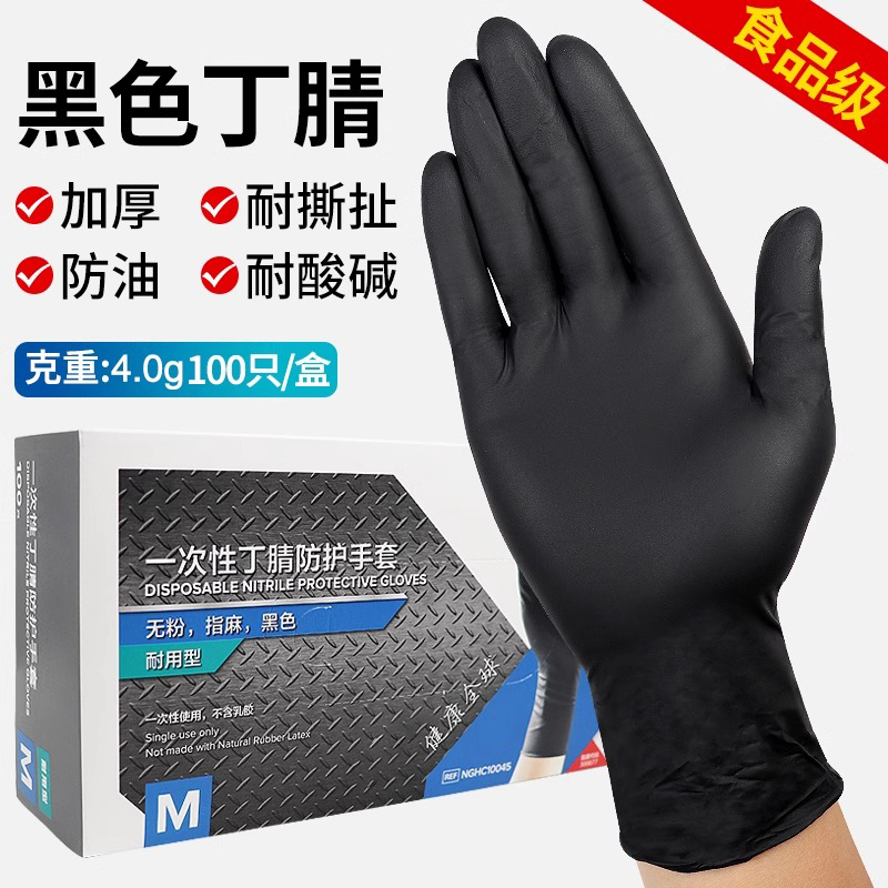 일회용 장갑 두꺼운 내마모성 블랙 니트릴 라텍스 고무 pvc 식품 Ding Qing 미끄럼 방지 자수스토어 가기