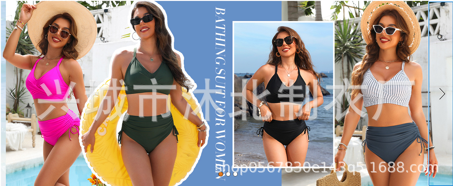 유럽과 미국 여성의 새로운 하이 웨이스트 비키니 세트, 조임끈이 있는 배 조절 수영복, 크로스 타이 수영복 2025스토어 가기