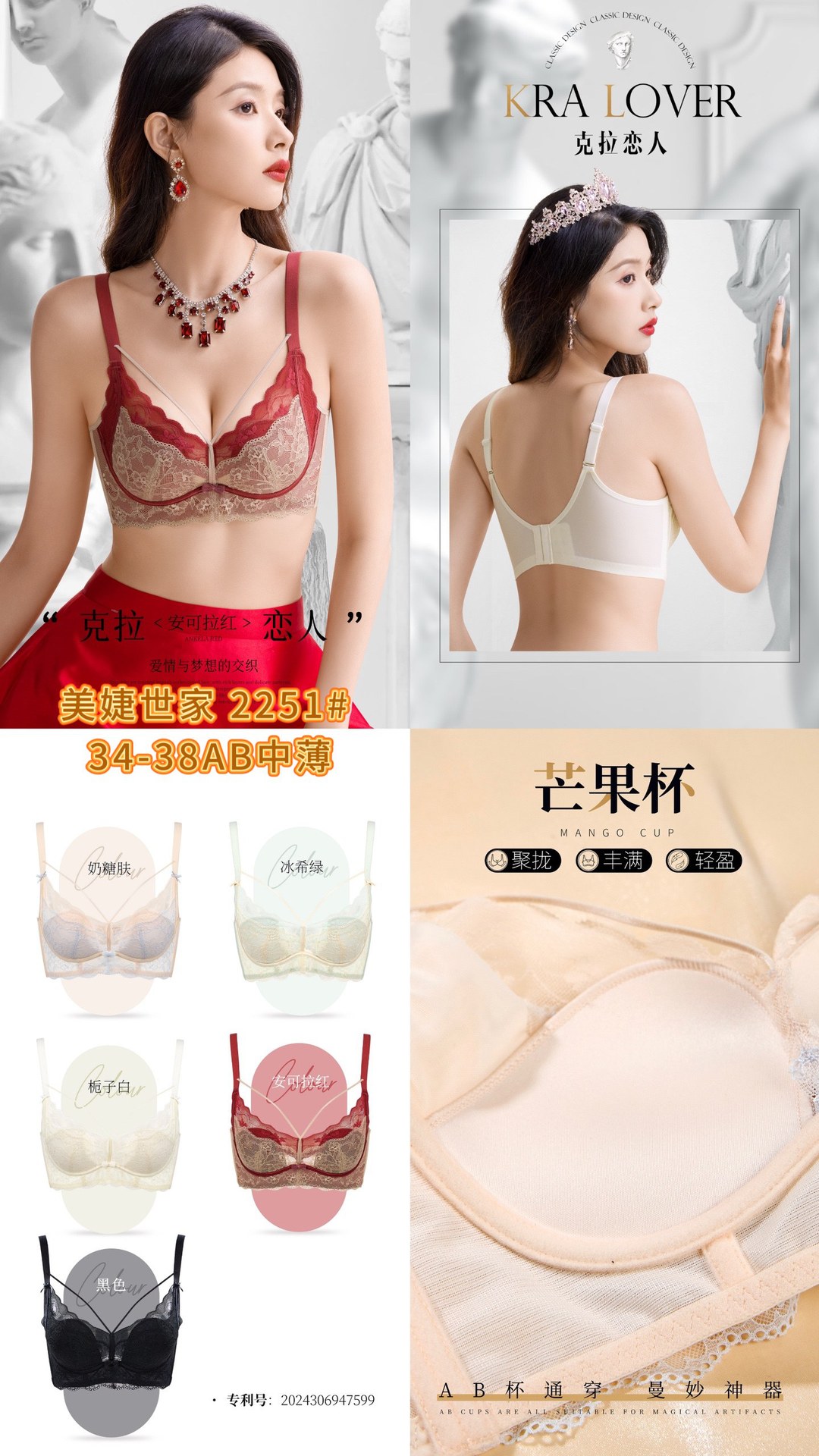 Meijie Aristocratic Family 2251 망고 컵 속옷 여자 얇은 모임 AB 컵 조정 가능한 안티 처짐 브라스토어 가기